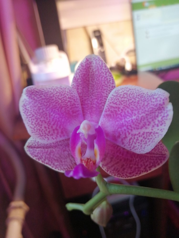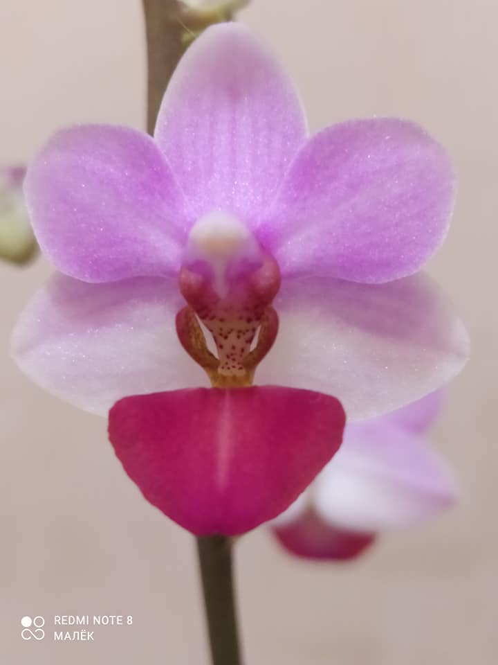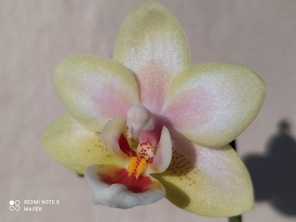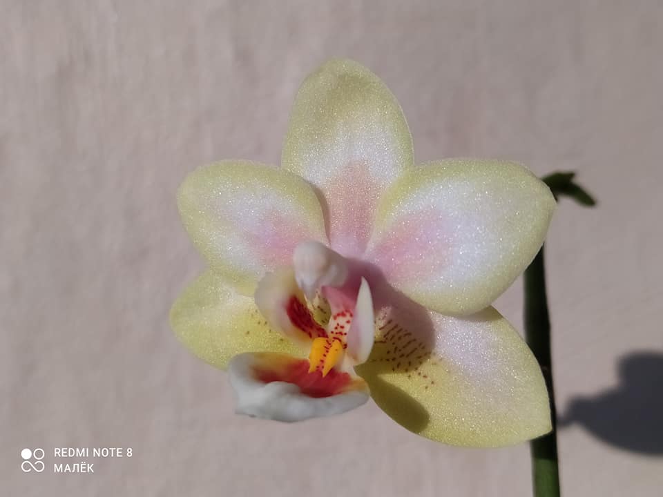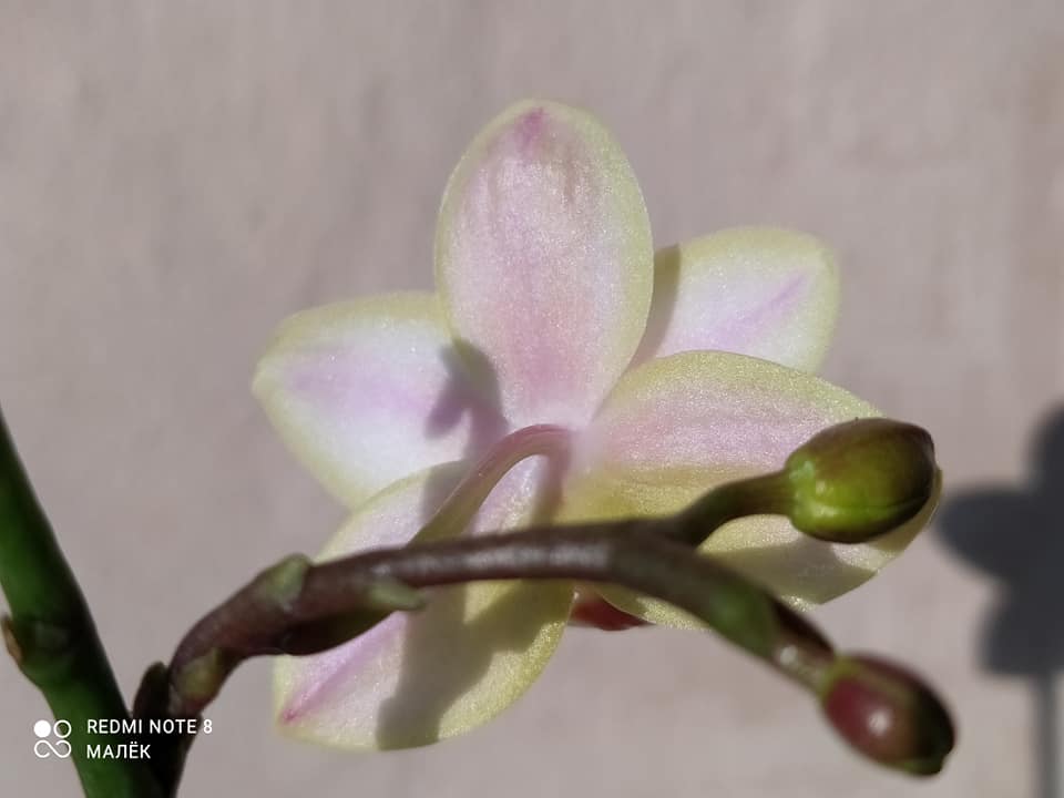 Phal. Princess Kaiulani Первое цветение. Цветок красивый, ароматный, но небольшой (около 4 см).