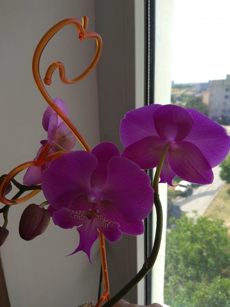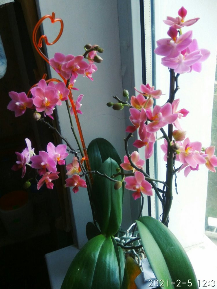 @julesja, спасибо! покупала в размере меньшем, чем 2,5, но адаптацию прошел неплохо. только не захотел цвести. потом ему, бедняге, от меня досталось: выпустил 2 цветоноса, из них один- бубликом. потихоньку я его вытащила, но потом, окрыленная победой, решила подвязать к держателю (он рос врастопырку и мешал). ВОТ ТУТ ОН И СЛОМАЛСЯ!!! зато потом первый цветонос дал 2 ответвления! это первый цветочек, пока небольшой, но должен увеличиться! когда зацветут все цветоносы будет красивое облачко!!!