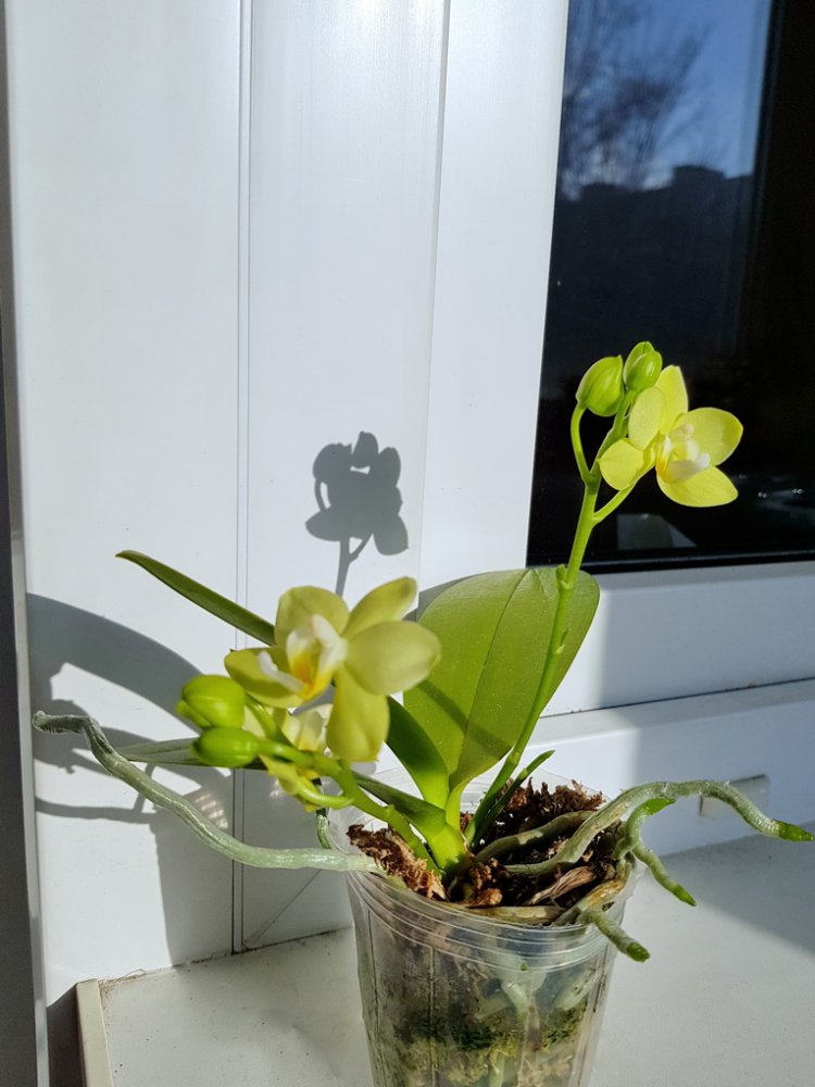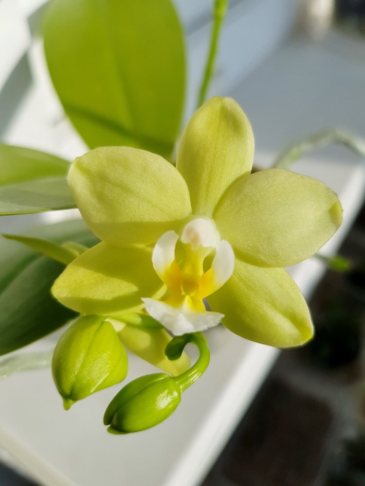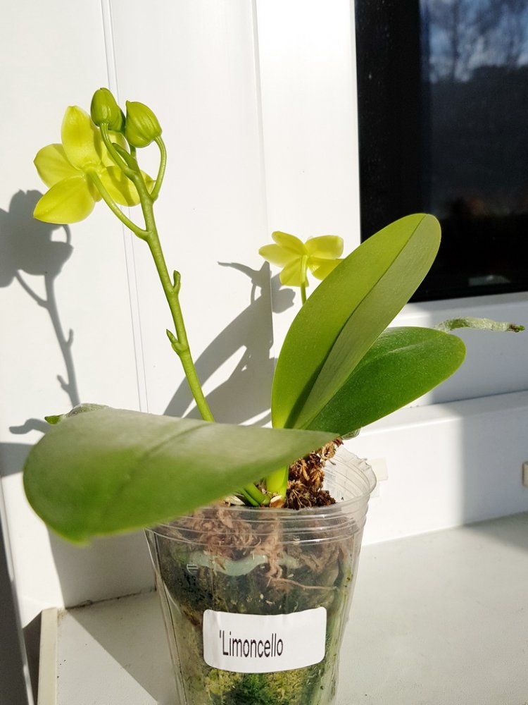 Расцвёл Phalaenopsis .Limoncello- горшочек с названием. Цветки зелёные по сути и 4.5 см размером. И фото цветения, что б сравнить. В родителях похоже стюартиана должна быть. Но в моём ей и не пахнет, форма цветка другая основательно. Листья совершенно зелёные, не серебристые ни разу. И он вообще не пахнет никак, ни лимона, ни намёка. Кто- то знает, кто у меня расцвёл ?