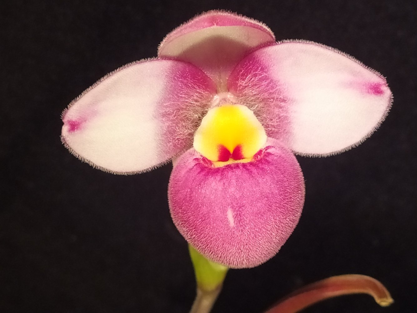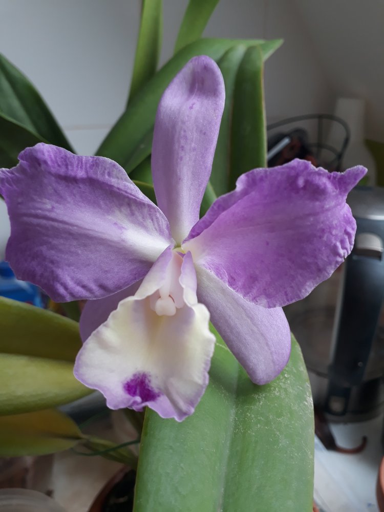 У меня цветет C. November Bride Diana/c. walceriana, от Швертера. Цветет уже на второй бульбе, на первой было два цветка. Очень милая, компактная каттлея, цветы 8-10 см, очень ароматные.цвет передается неверно, на самом деле, меньше сиреневого, более бледный цветочек, скорее, розовый. На губе переходы от салатово-зеленого, к бледно-розовому.20210206_100609.jpg