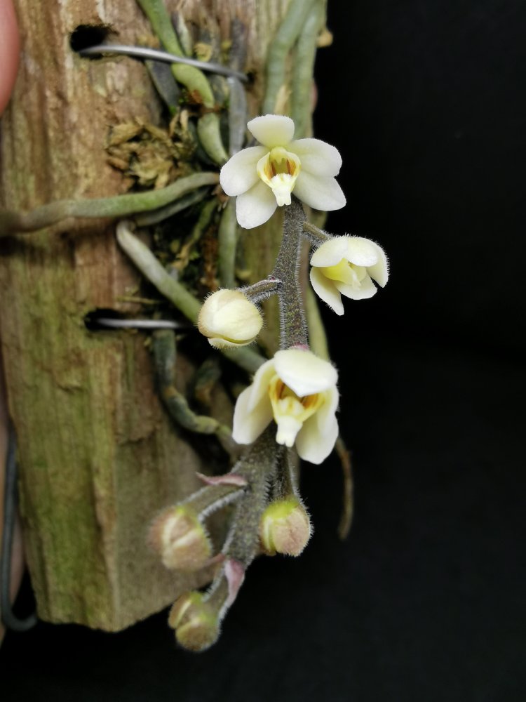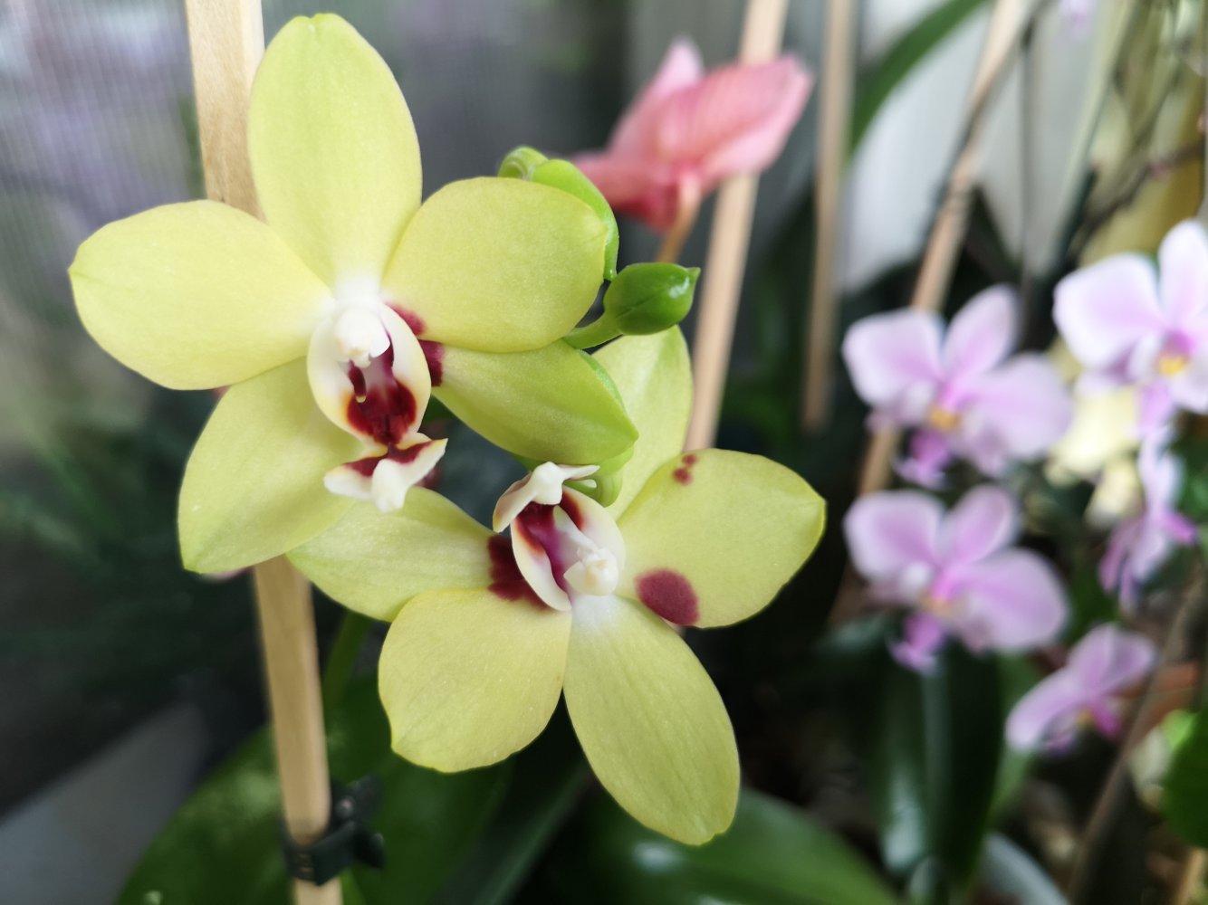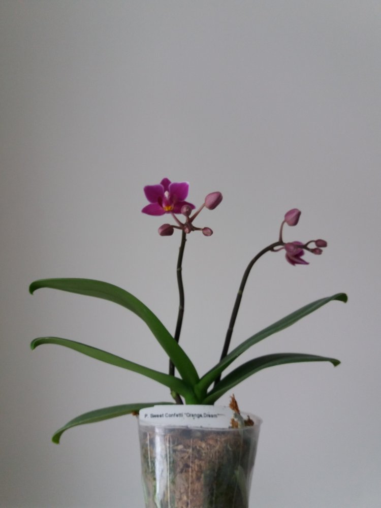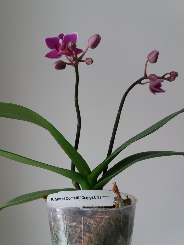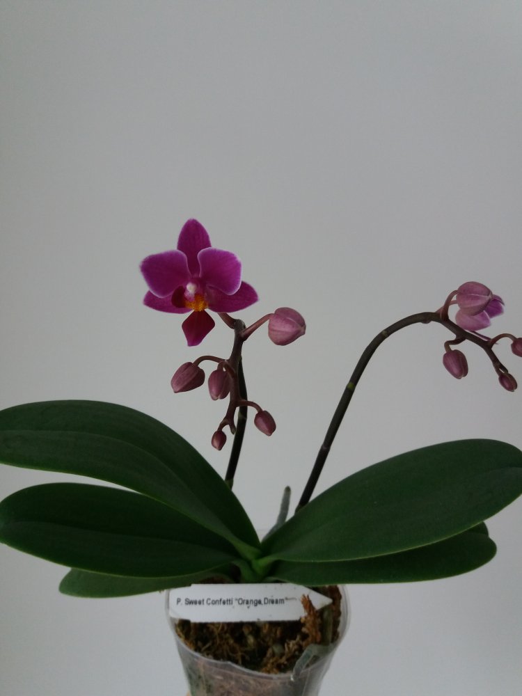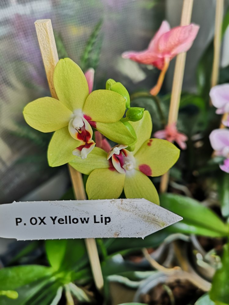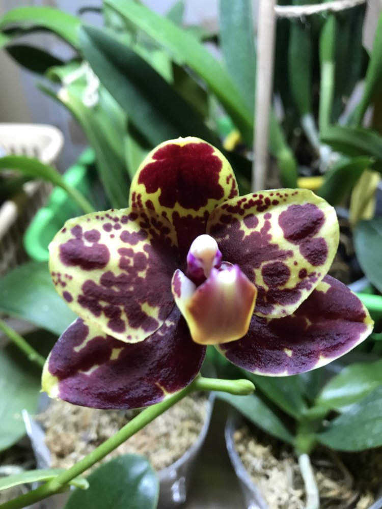 @clavicle, второй 100% Phal. Mituo King 'Blood Spot '. Под лампами будет давать более темный бордовый оттенок цветка на беловатом фоне. Если стоит на солнце, цветы будут распускаться ярко- алого цвета на желтом фоне. Не ароматный.