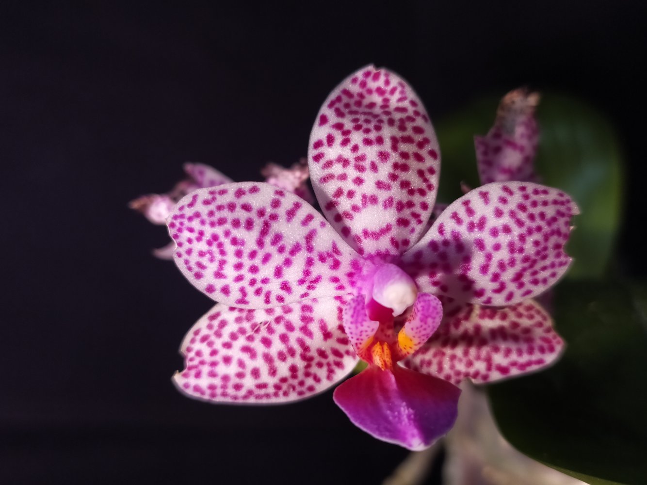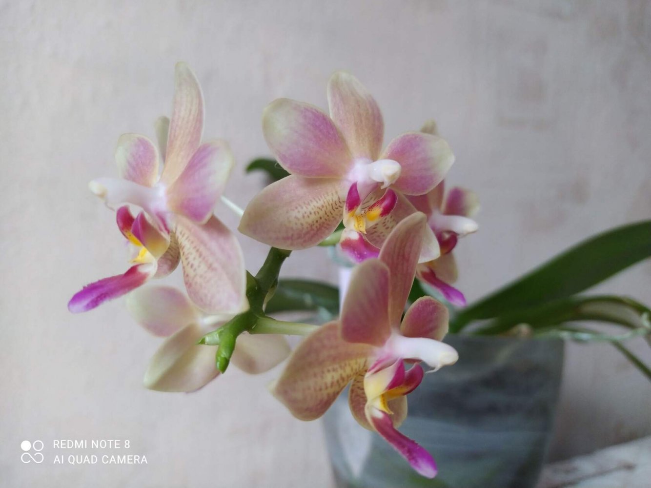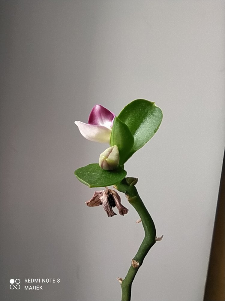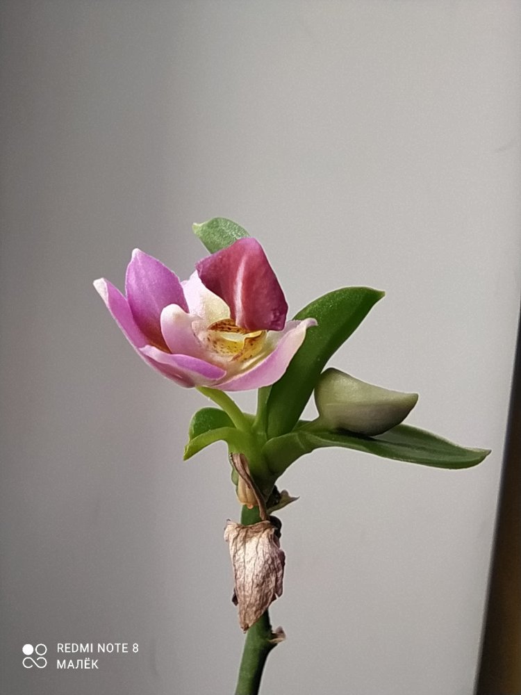 Ещё фото: p.pulchra x venus. Единственный более-менее уцелевший цветок - другие два начисто сожрала улитка
