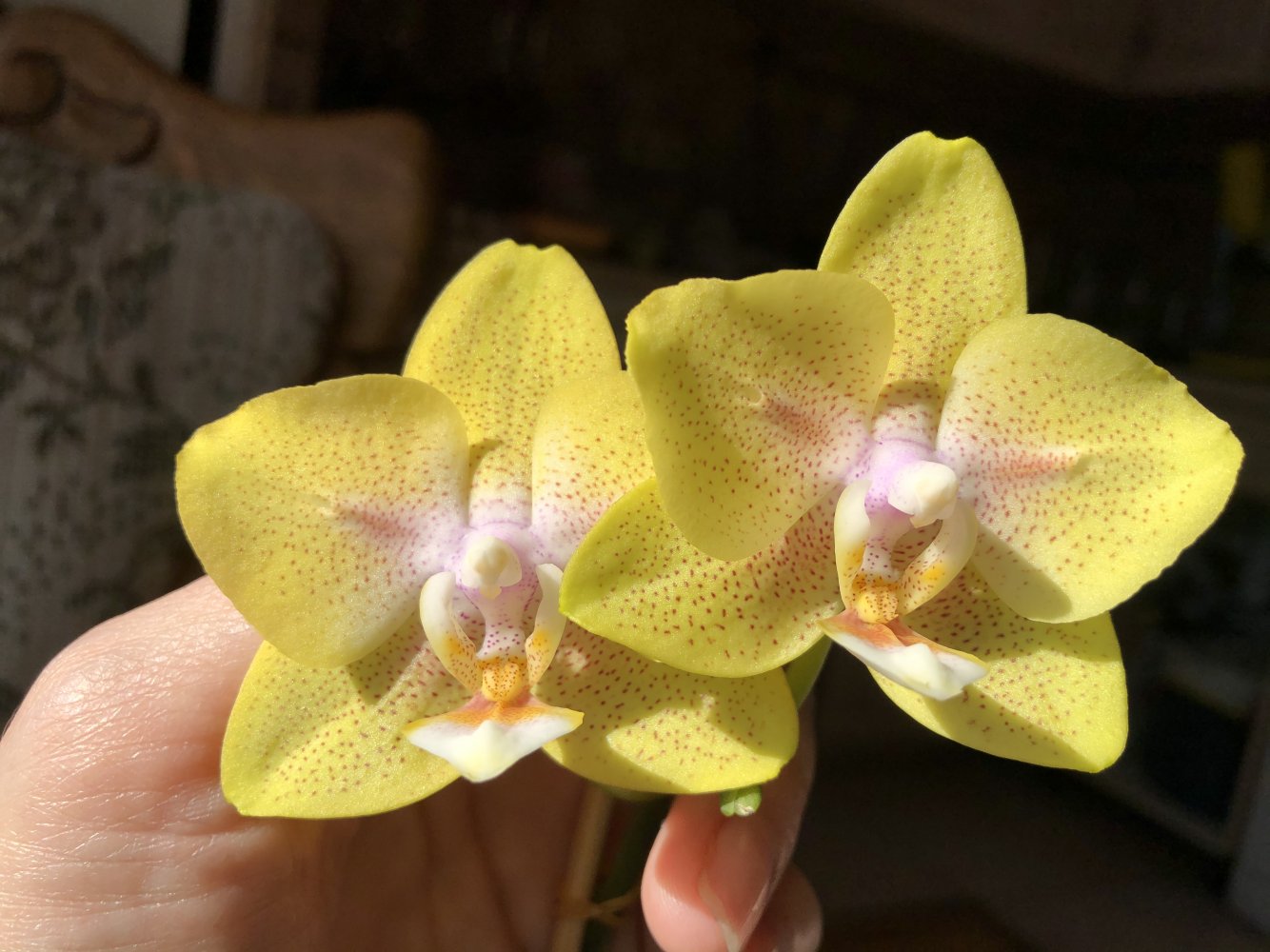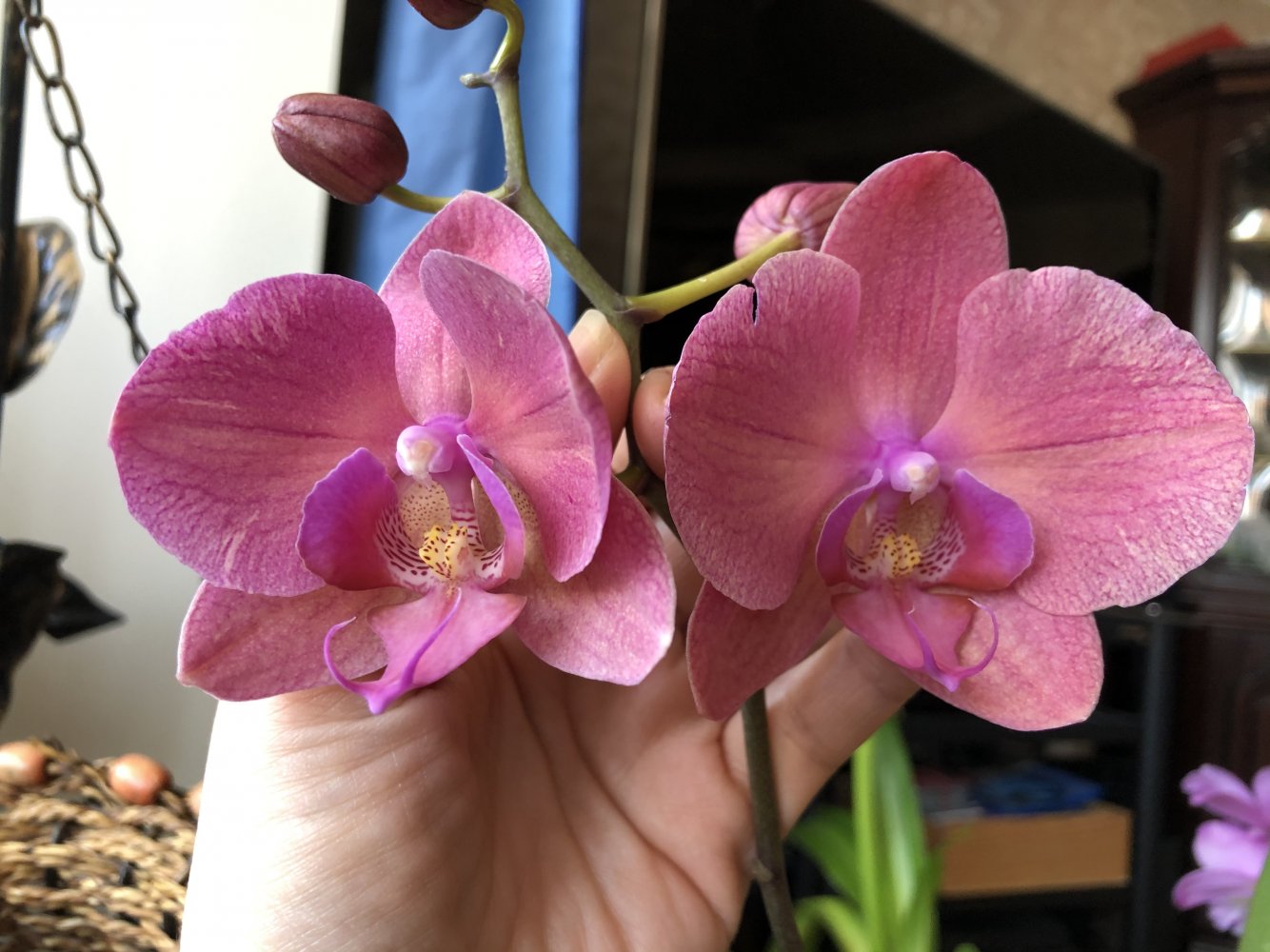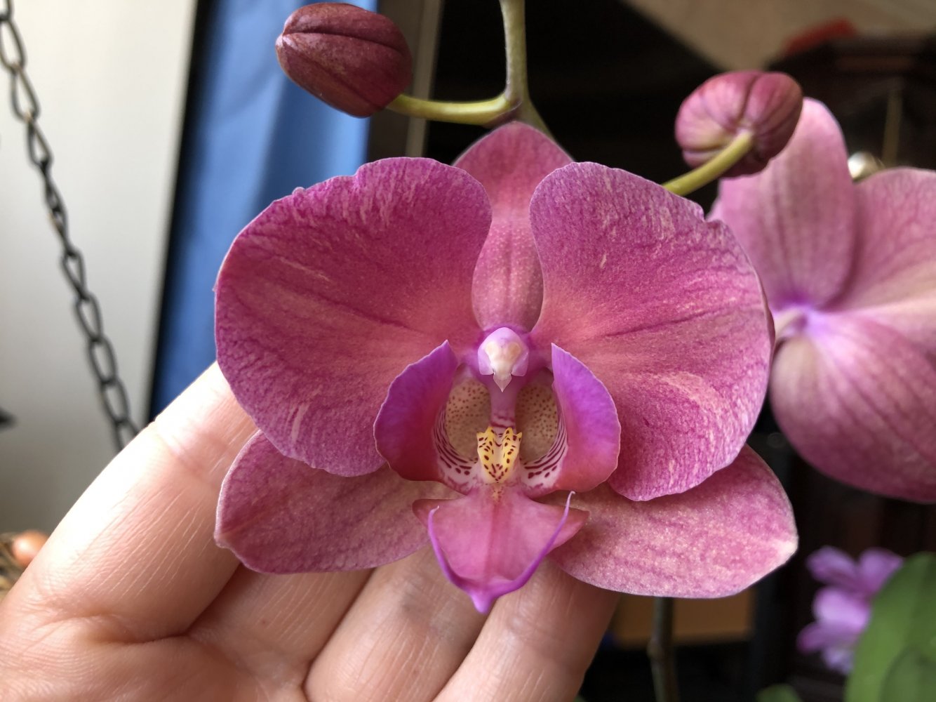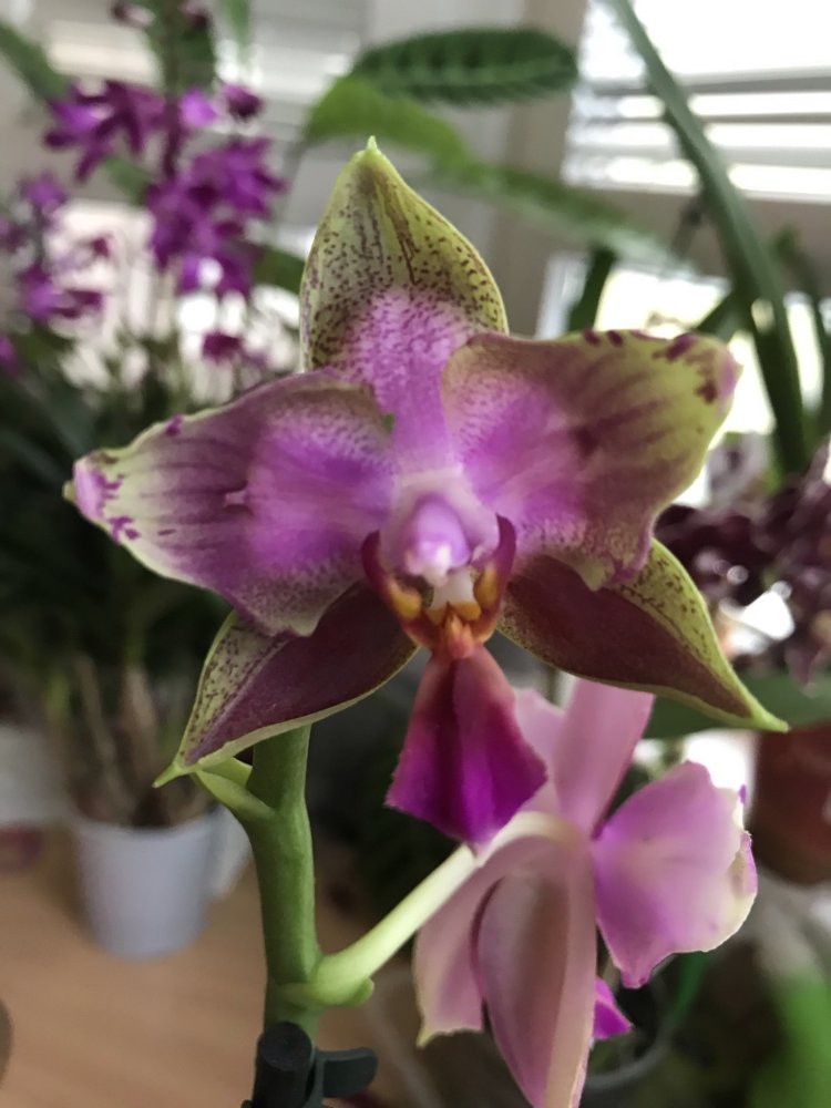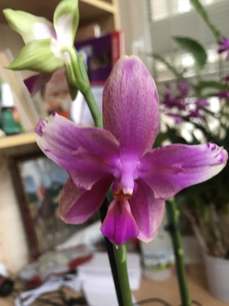 Моя Лиодорушка, практически полная бабочка, выдала шедевральный последний цветок, который гордой звездой, как на новогодней ёлке, держался аж 2 месяца! Признаюсь что этот цветок покорил меня больше чем бабочка