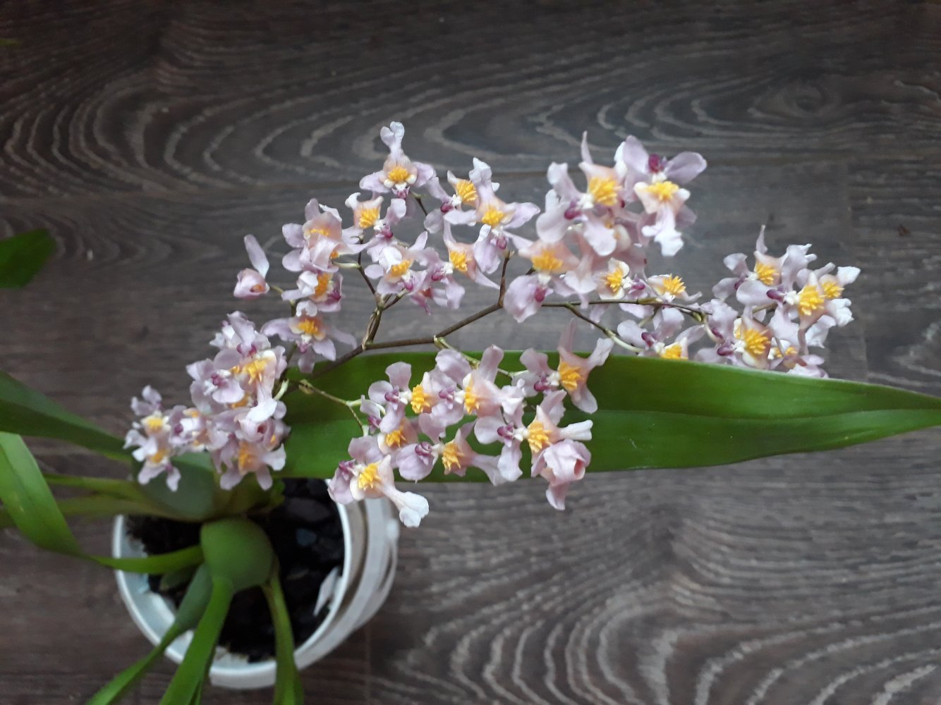 @lin265, это точно не Pholidota, уверен 100%. Их не так уж и сложно отличать, учитывая что dendrochilum никогда не бывает двулистным (по крайней мере я не видел) и у всех фолидот более мясистые цветки. И фолидот гораздо меньше видов чем дендрокайлумов (40 против 300), так что я все уже проверил@citizen, а может это и не Dendrochilum, а Pholidota... Не уверена, но попробуйте поискать среди них... эти два рода часто путают друг с другом из за сильного сходства растений.