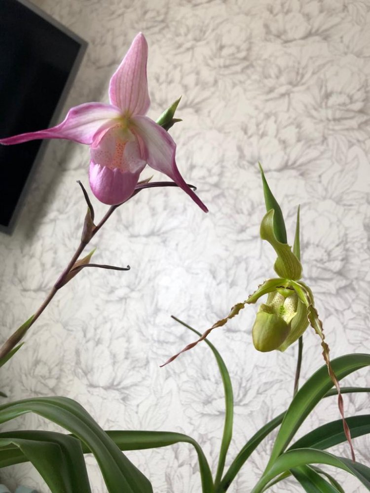 Любимейшая Hatuyuki nagoriyuki зацветает. У одного растения цветы всегда с зеленцой, у второго с нежно розовым румянцем. Одна из первых орхо любовей, люблю до сих пор