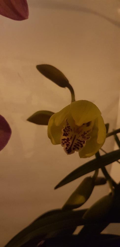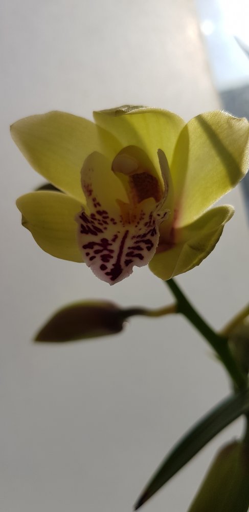 Мороз и солнце в Москве! Девочки и мальчики срочно хочу поделиться фото. Со вчерашнего дня и ночью снимала раскрытие цветка. Красавец цимбидиум рождения 2000 годов, куплен мною в 2002. Я от восторга даже посчитать не могу сколько ему лет. Он всегда цветёт в феврале и каждый раз по-разному то один, то три цветоноса.