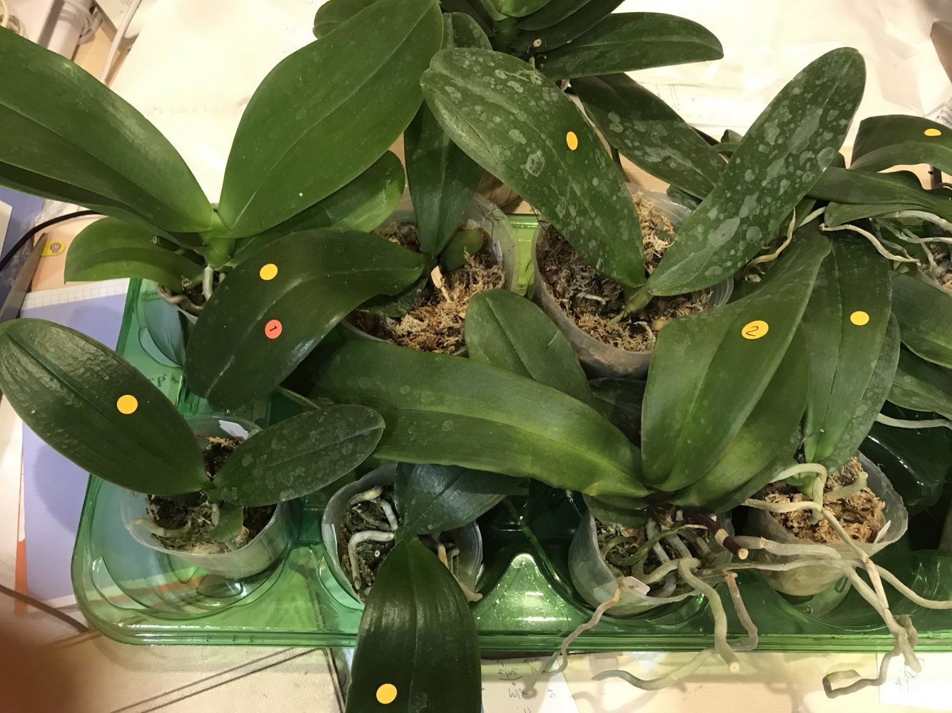 Впринципе особых проблем нет , растения крепкие , цветоносы срезаны ( не пожелетели и не загнили) . Тургор хороший о обоих. У Даймонд корни и мох сухие , все хорошо, вроде здоровы. У жёлтого мох как будто вчера полито и корни тоже влажные очень. Горшок увесистый с растением, немного корешки почернели в одном углу, пара листьев пожелтело, криминала нет, гнили не видно. Честно говоря очень боялась что растения прийдут плохие, первый раз заказывала. Жду остальные цветульки 🌸🌸🌸 Всем спасибо