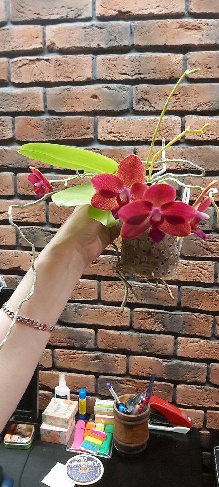 3. Phalaenopsis Mituo King red pepper. Растение крупное, сидит в литровом ведёрке. Недавно отцвело. Цена 1 500 рублей.