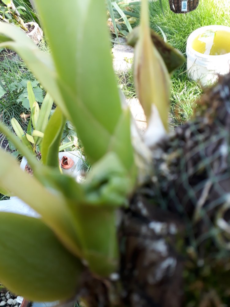 Значит, он ест сам себя, корни погибают. Бульбы старые всегда дают питание молодым ростам, а сами иссыхают, но росты растут здоровыми и жизнерадостными. Как Вы пишете, и молодые росты неважно себя чувствуют. Чисто моё мнение: вынуть из горшка, аккуратно освободить от старого субстрата полностью, удалить гнилые и погибшие корни. Бульбу старую, раз она сухая, пока я бы не трогала, пускай кормит потомство. Горшок на Ваше усмотрение, я бы взяла пластиковый (неважно прозрачный или нет), добавила отверстий шилом по периметру в стенках в шахматном порядке (корни должны дышать). На дно немного керамзита, потом кора средней фракции, немного мелкой фракции и несколько кусочков угля. По периметру горшка у стенок сделала бы "гнездо" из мха. Внутрь поставила растение, досыпала мелкой корой (между растением и мхом) и сверху немного положила мха по периметру, не касаясь бульб.
