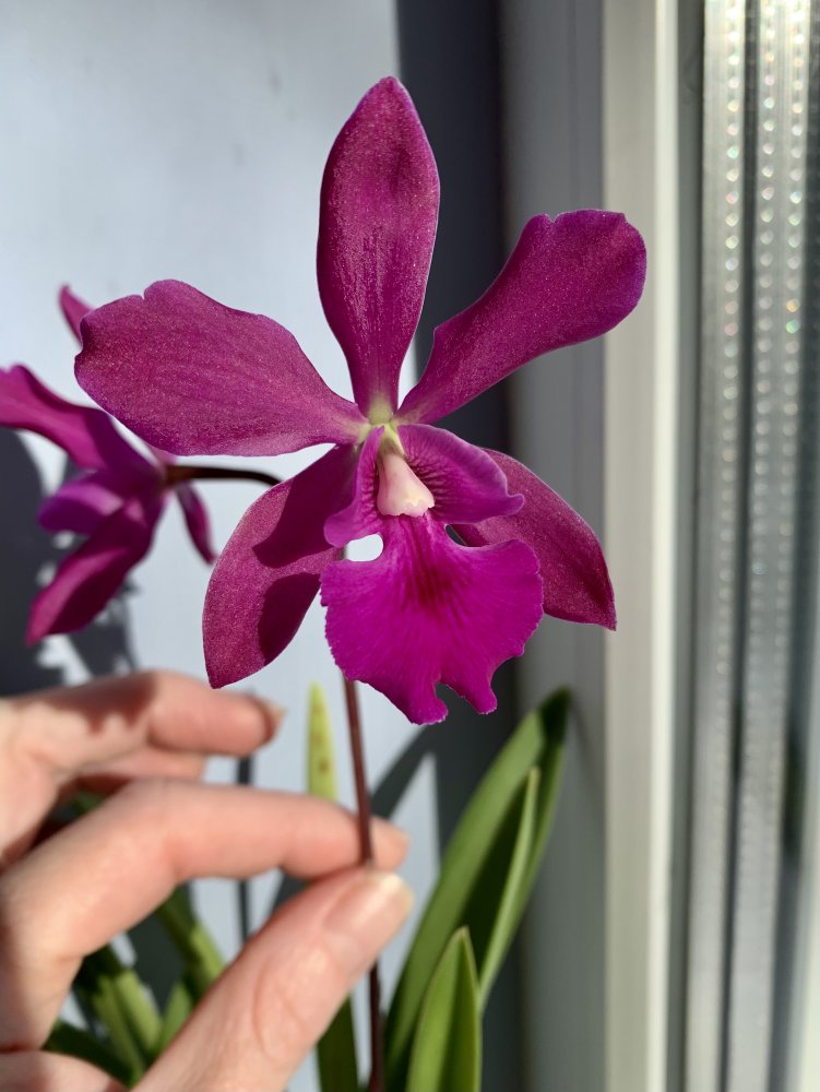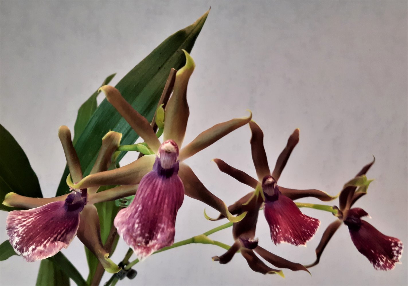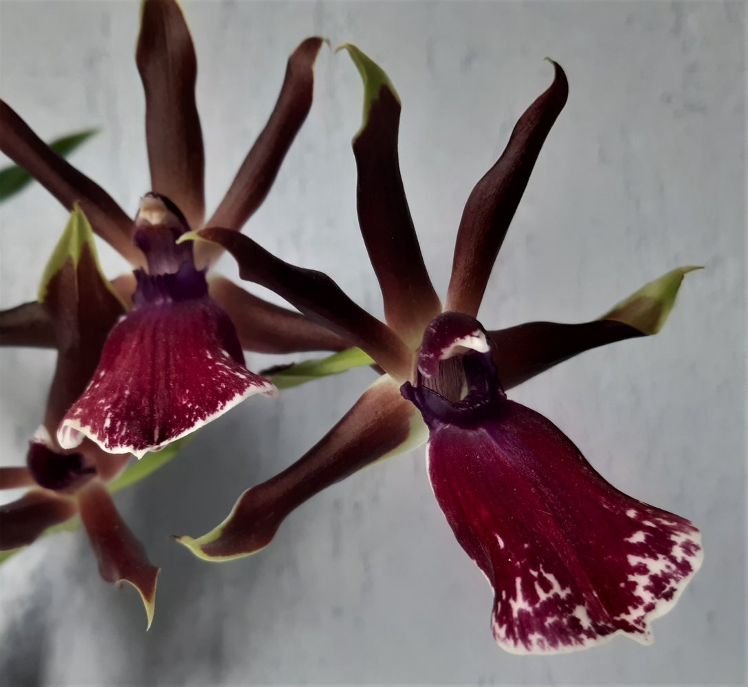 Zygopetalum Rein Moonlight от Pink Labl цветет с первого же домашнего роста. Ароматный на солнце. Cycnodes Wine Delight в представлении не нуждается, аромат ацетона и пертусина в одном флаконе.