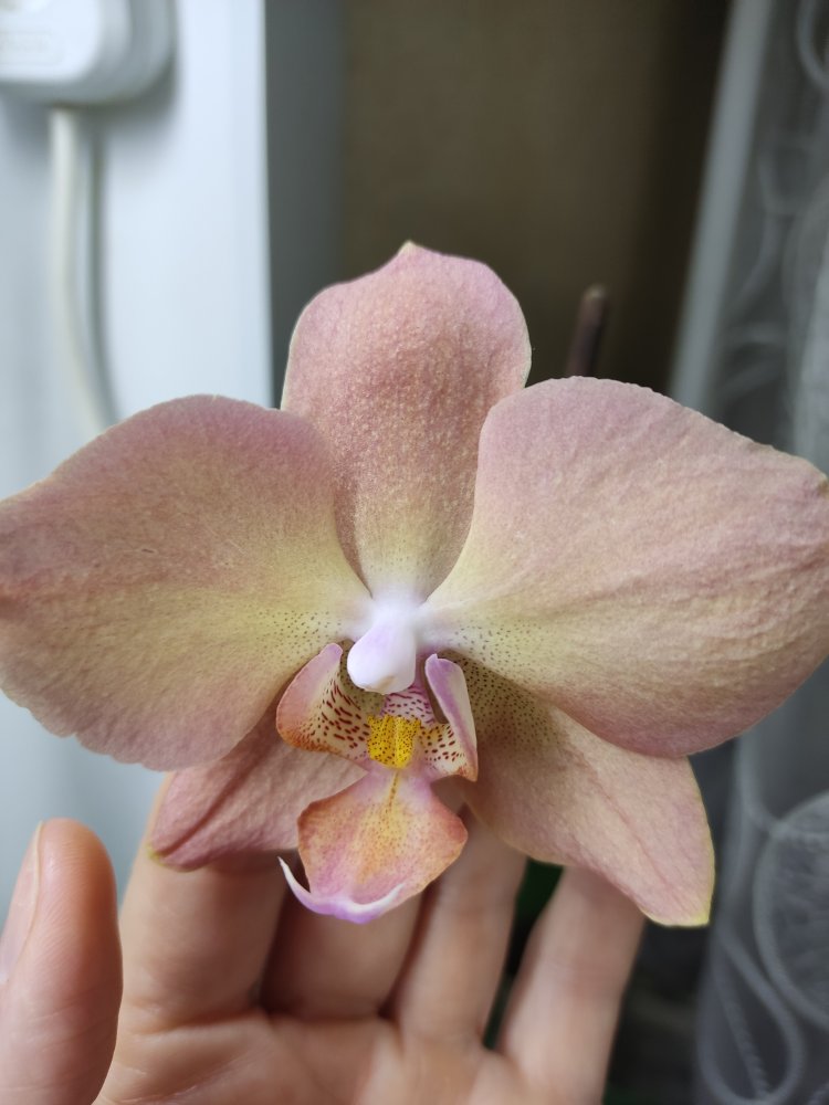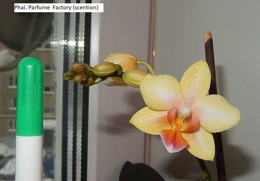 У меня такой же летом цвел, аромат был цветущая липа. Бежеао- желто- белый, название такое же Сценшнзаказа 181889 - получила 2.02.21г из наличия, должен был быть бежевый и парфюм https://passiflora.ru/product_info.php/products_id/364120 расцвёл мелкий, кончик фломастера для масштаба, губа оранжевая (первый день), остальные фото сегодняшние. Запах, на мой нюх, свежескошенной травы с какой-то горчинкой. Как вы думаете - он не он?