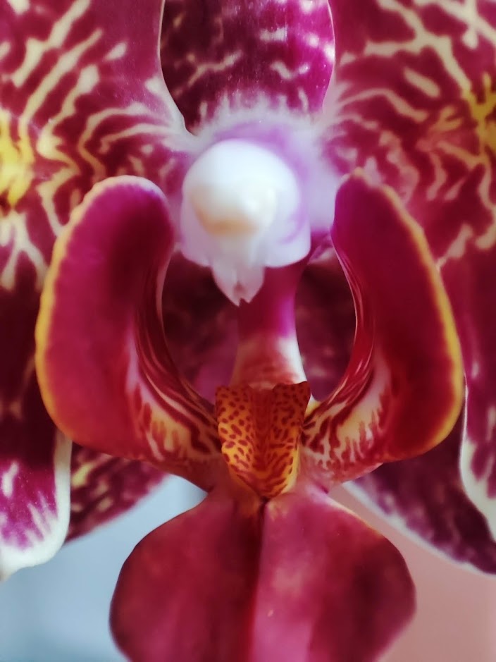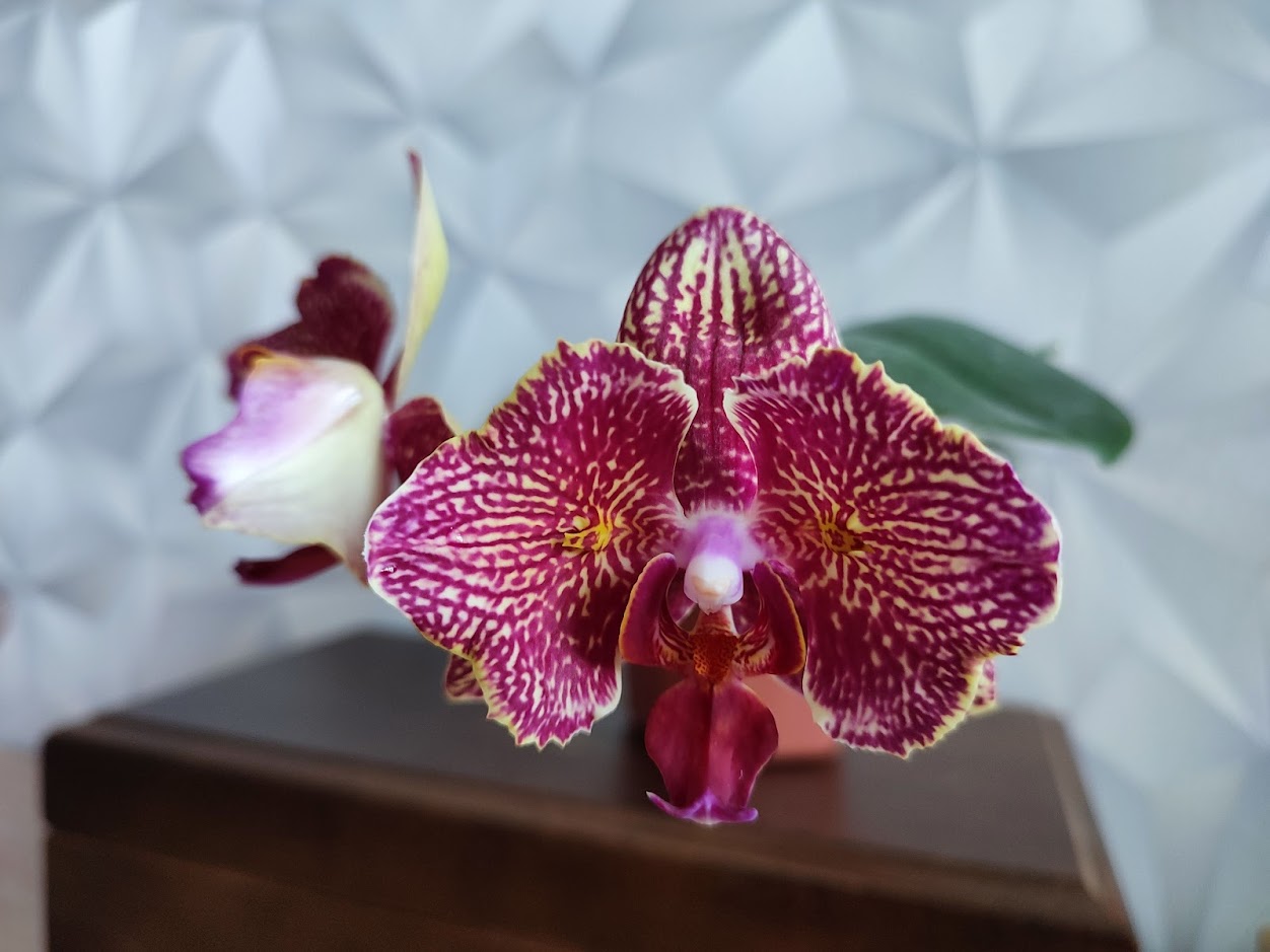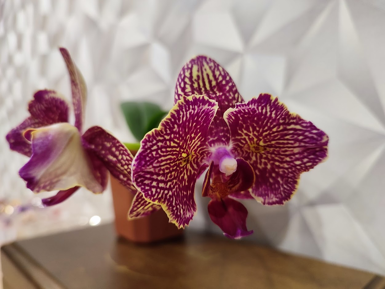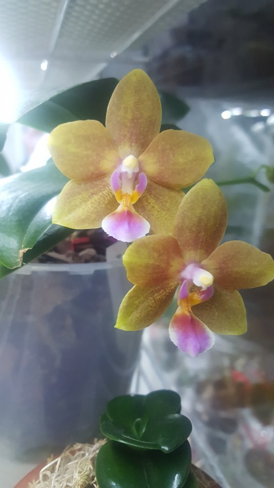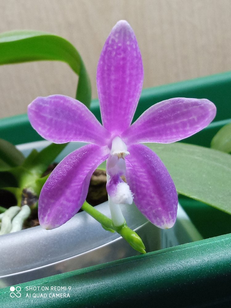 Phal. tetrasris (red x blue) от Яфона. Цвет передан верно. Именно таким он и видится под лампой.