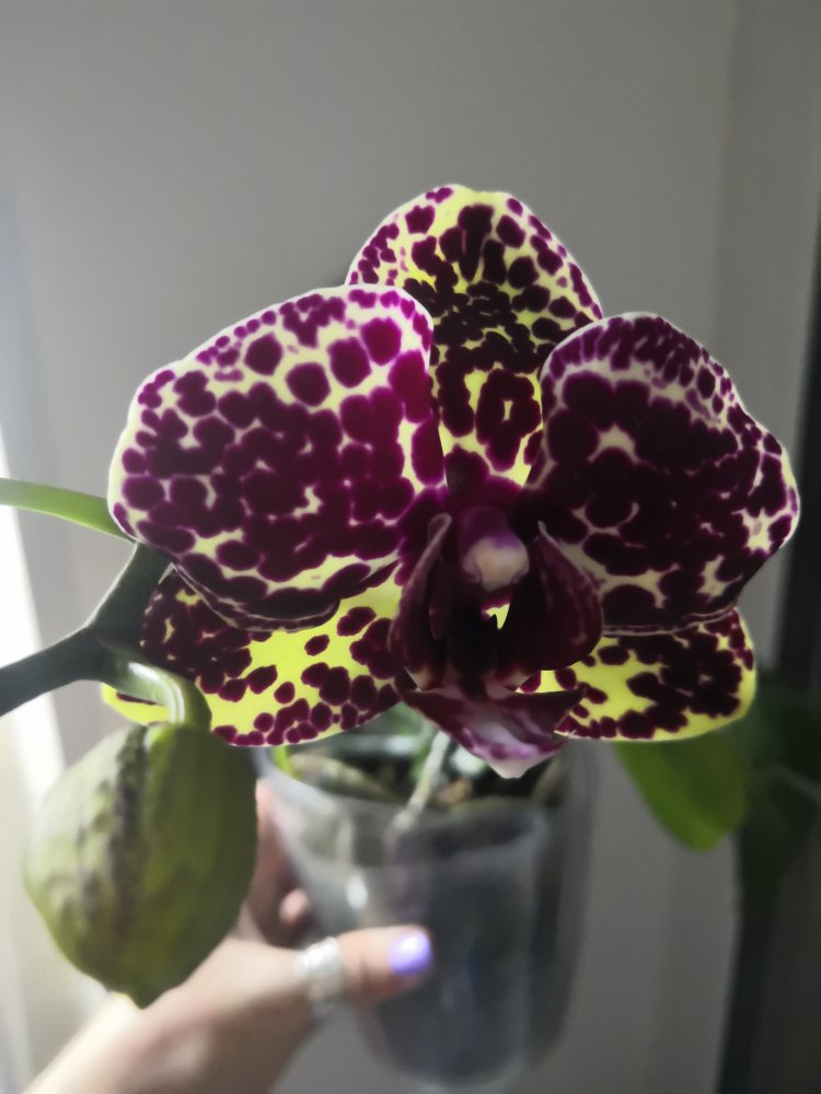 Зацвел подкидыш, отдали без опознавательных знаков, с трипсами и грибком. Цветок 7 см, бархатный объемный крап)