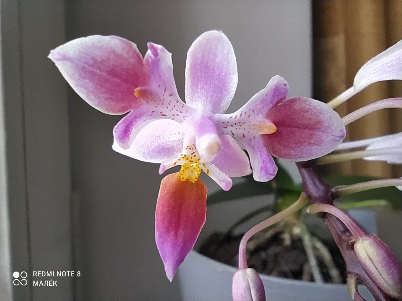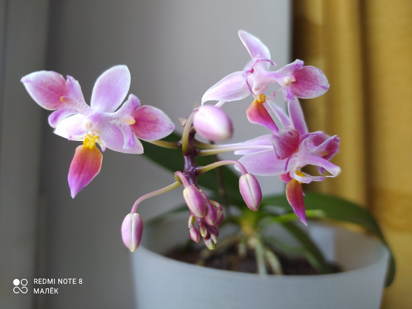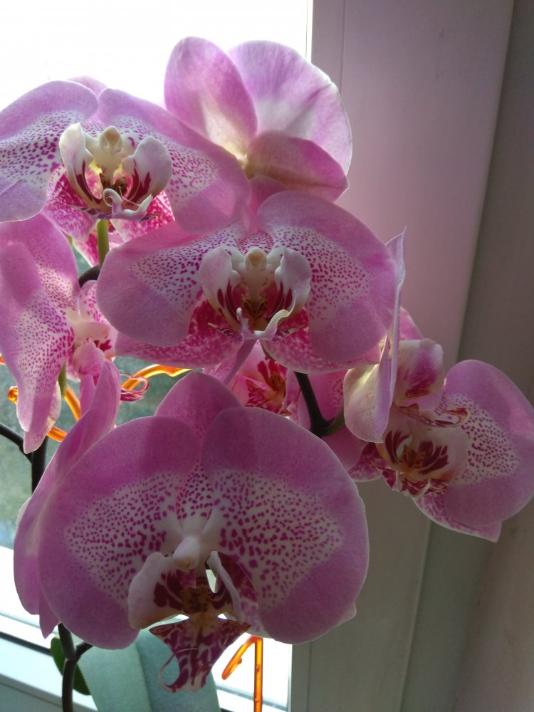 Phal. Leopard Prince "хвастается" всё новыми и новыми цветами! Они прекрасны! Как будто снежинки по розовому полю!