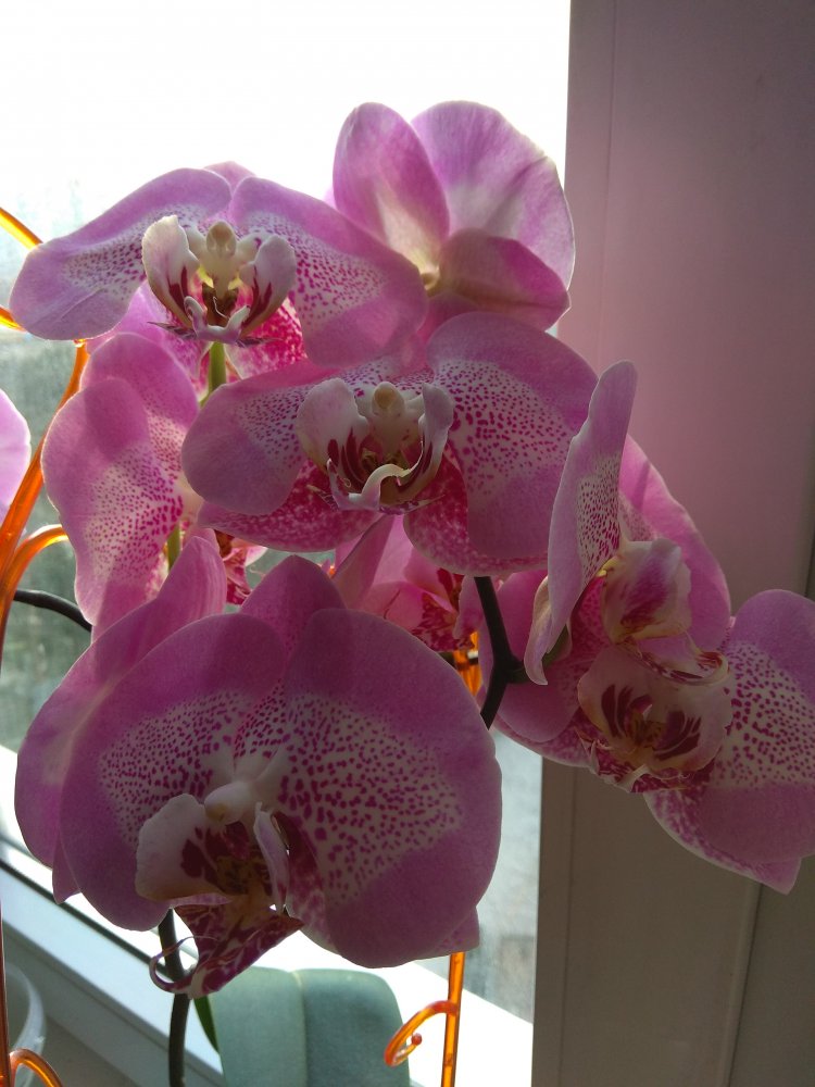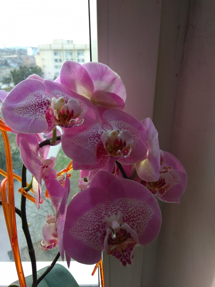 Phal. Big Pink Cat - крупные цветы (больше 7см)- пелорики, очень долго держатся на цветоносе! К сожалению, не смогла показать всю красоту цветка,- очень неудобно фотографировать!