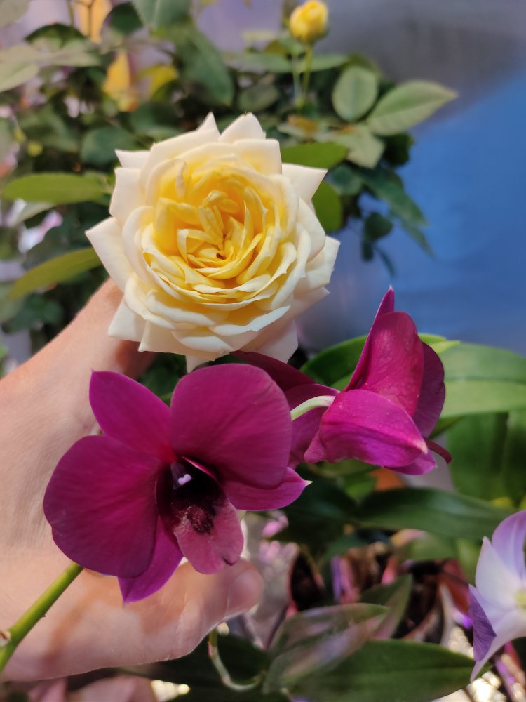 Союзное фото Розы Палллны и жгучего Дендрофалика Тайвань Блэк. Она - дама (уже) ароматная, он - просто писанный красавец!