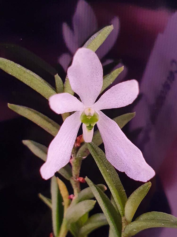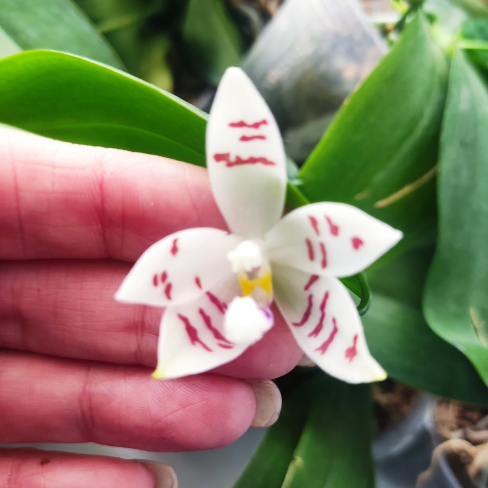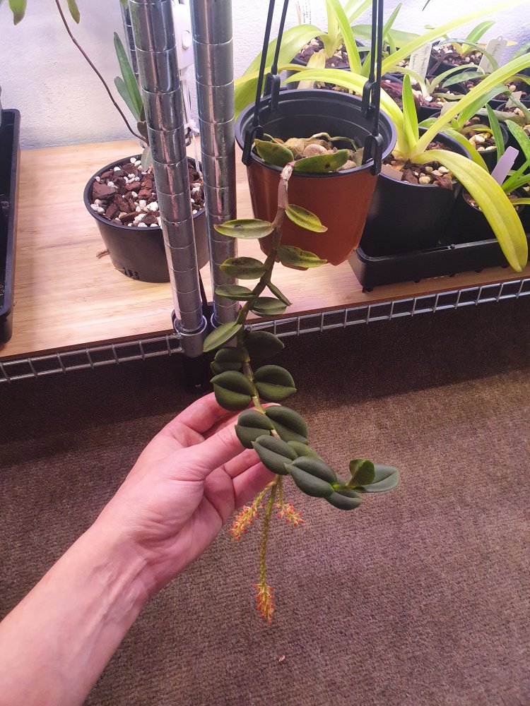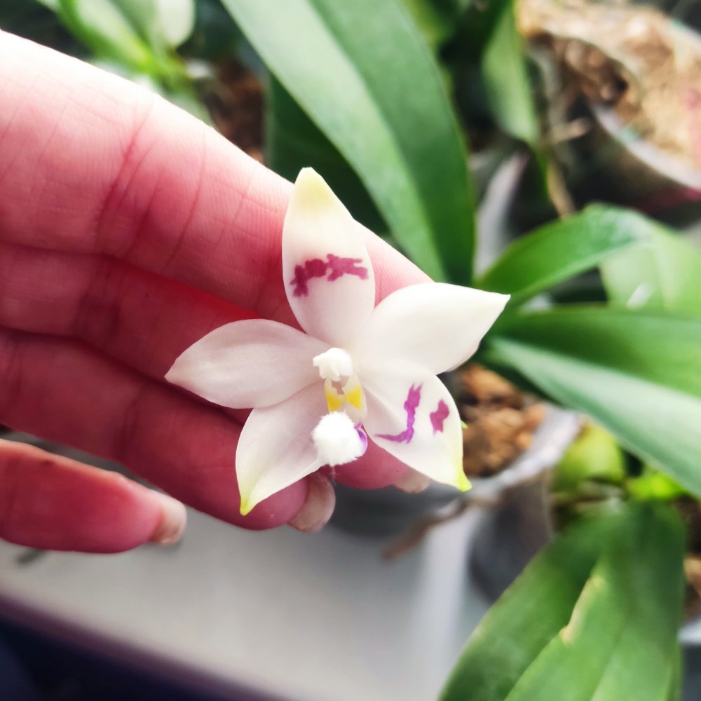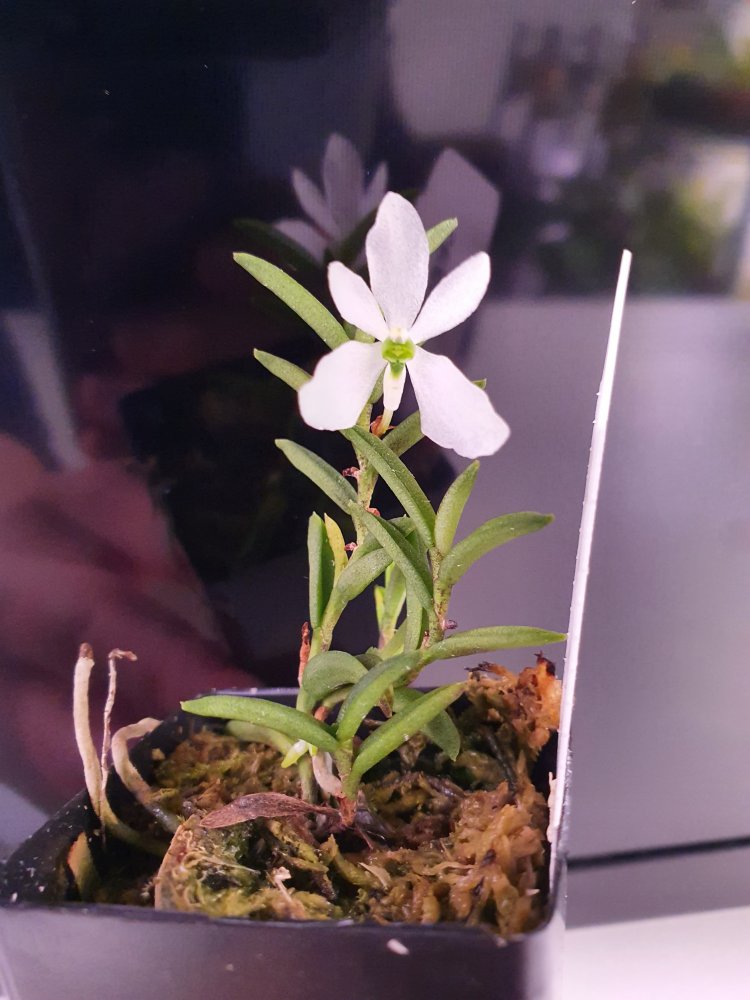 Купил это растение на аукционе eBay, продавалось как Malleola constricta. Я был удивлён что на него люди делали много ставок, не понимал почему обычная malleola привлекла такое внимание. При ближайшем рассмотрении уже полученного растения, это оказалась Robiquetia ilocosnortensis, недавно открытый и довольно редкий в природе вид. Ветвящиеся цветоносы, цветки крошечные но с характерной фиолетовой точечкой на губе. Причем она миниатюрка, так что это растение уже можно смело записывать в зрелый specimen plant. Что ж, будем растить 😁