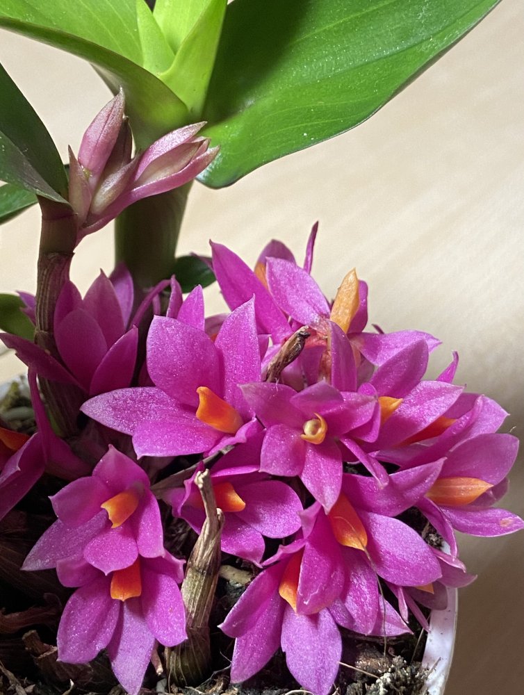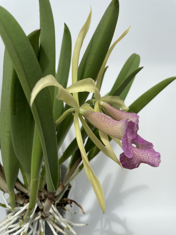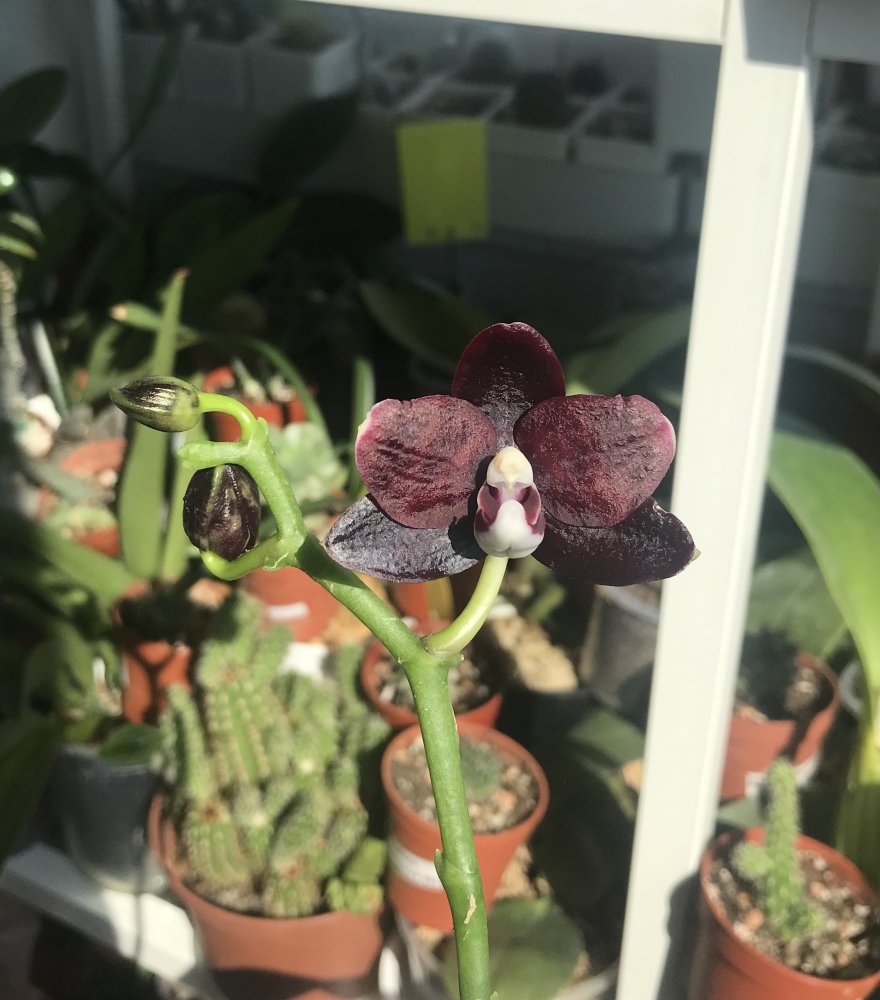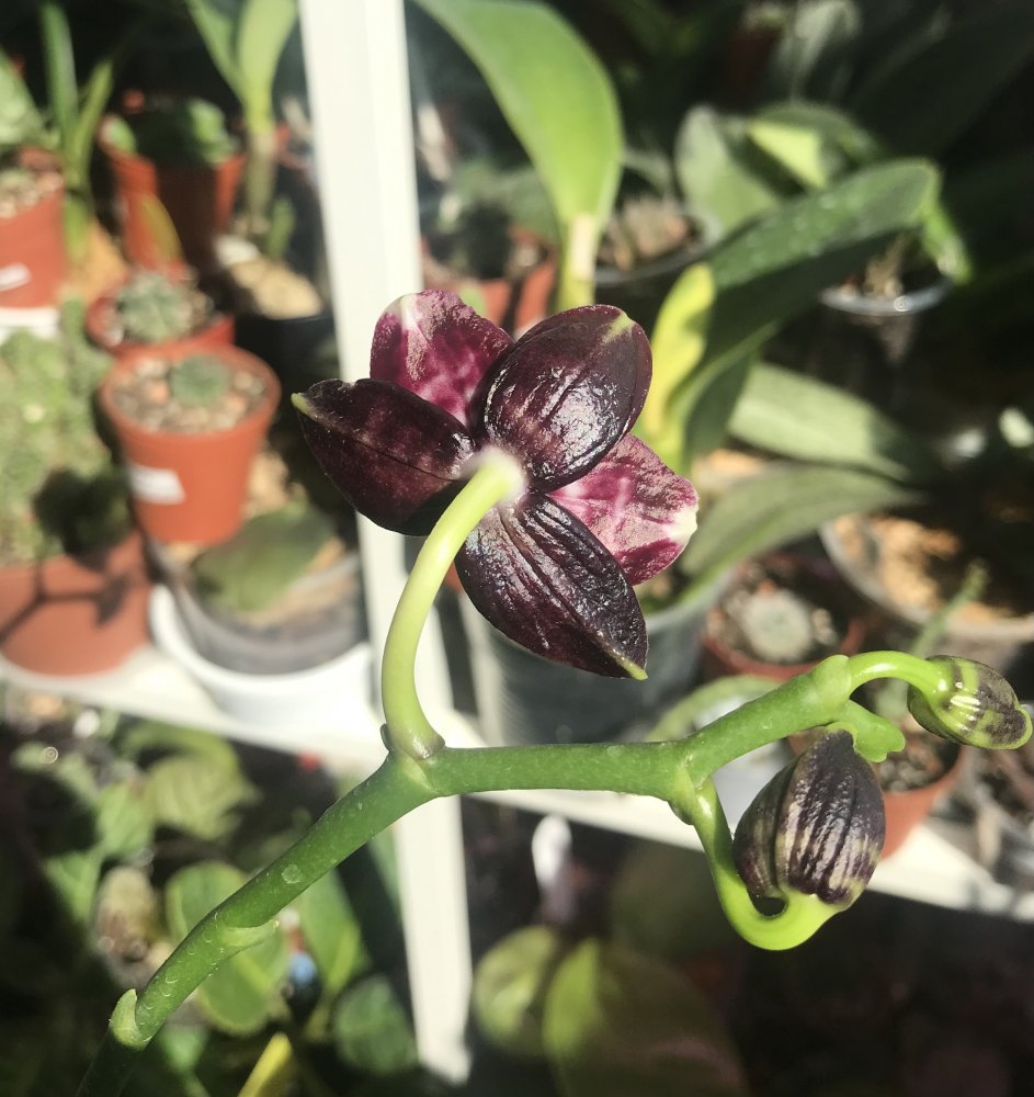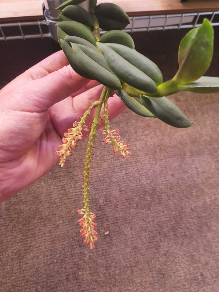 Купил это растение на аукционе eBay, продавалось как Malleola constricta. Я был удивлён что на него люди делали много ставок, не понимал почему обычная malleola привлекла такое внимание. При ближайшем рассмотрении уже полученного растения, это оказалась Robiquetia ilocosnortensis, недавно открытый и довольно редкий в природе вид. Ветвящиеся цветоносы, цветки крошечные но с характерной фиолетовой точечкой на губе. Причем она миниатюрка, так что это растение уже можно смело записывать в зрелый specimen plant. Что ж, будем растить 😁