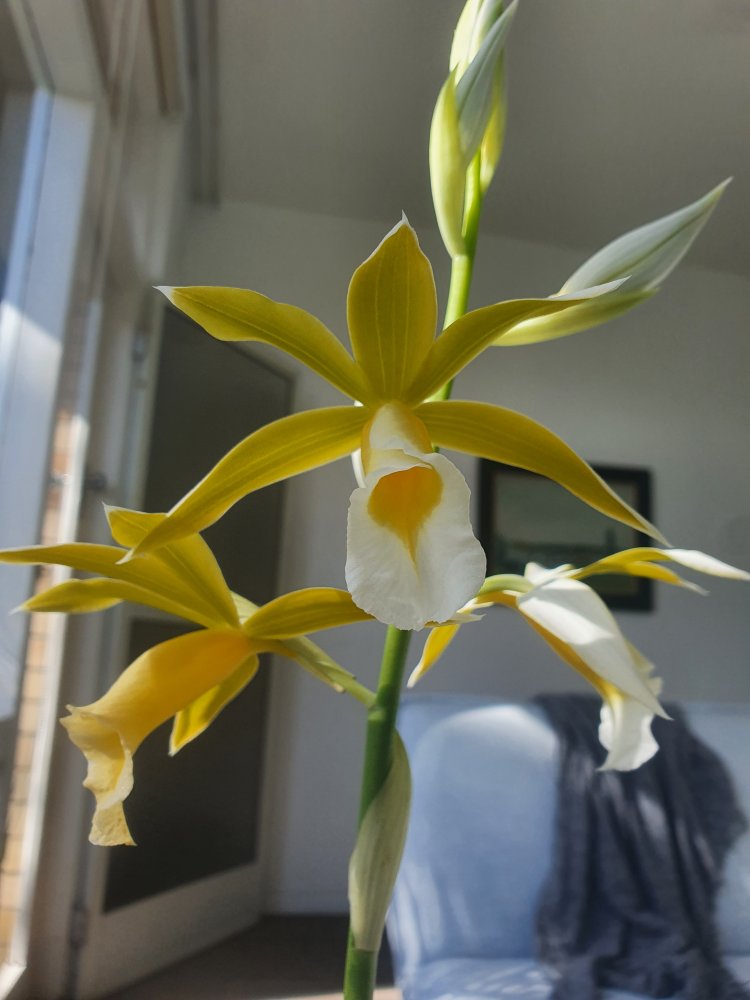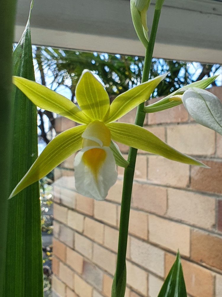 Phaius tankervilleae, альбинос филиппинской формы, цветонос высотой один метр, цветы 11 см, пахнет очень вкусно. Условия содержания как у обычного комнатного растения, субстрат обычный торфяной с дренажом и корой сверху.