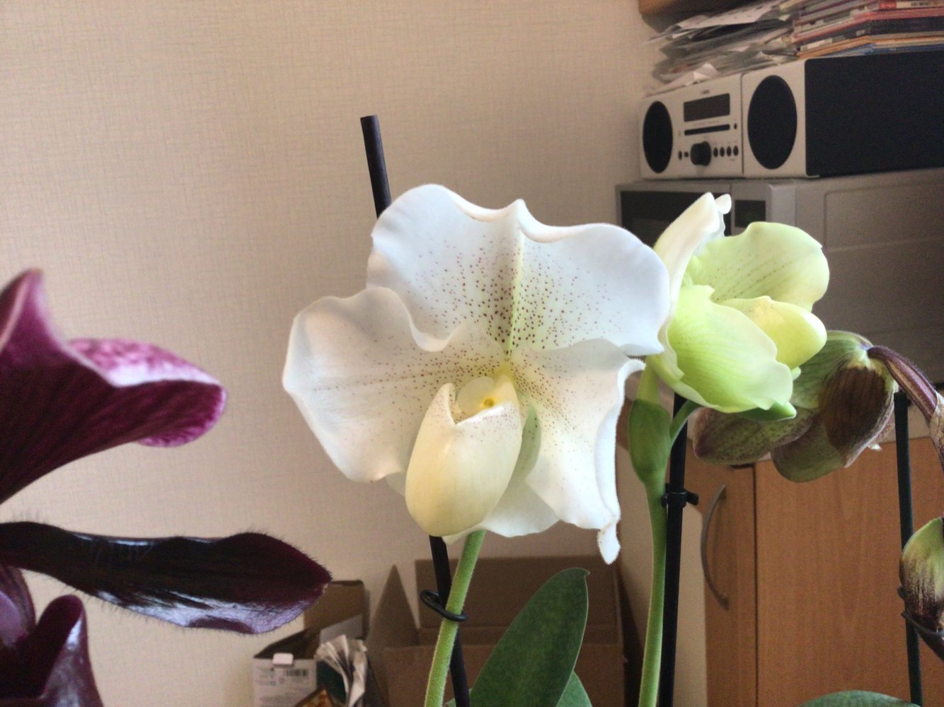 Vanda Kanchana Angelite совсем разогналась и спустя три месяца после цветения начала растить новый цветонос. Восемь эффектных крупных цветков украшали мою комнату весь июль и август.