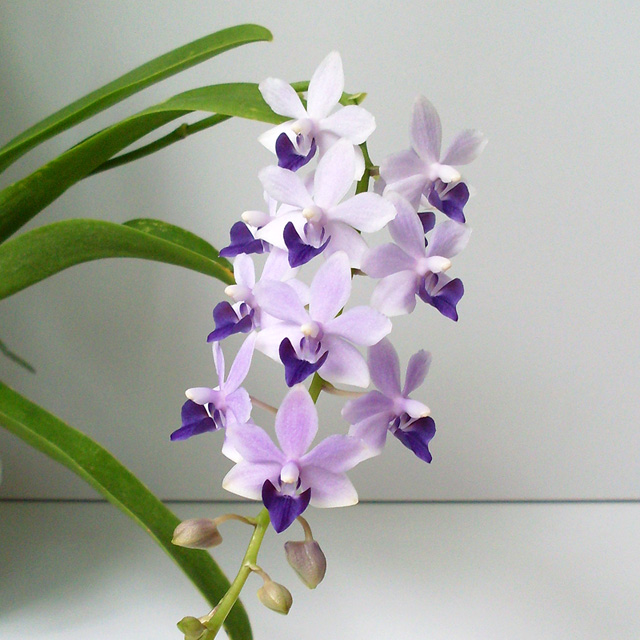 Но кажется, я свои ванды залюбил, они потеряли корни, а их листья тургор. Выращиваю этот род с голой корневой в стеклянных вазах, поливаю каждые два-три дня, как только корни просохнут и станут серебристыми.