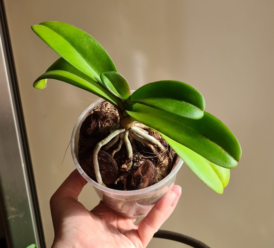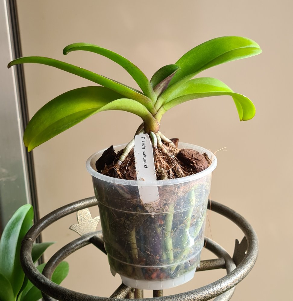 4. Dtps. Liu's Sakura KF У меня с июля 2019 года. Поставщик Yaphon Farm , бирка с название сохранена. Получила в 2019г. размере 1,7. Сейчас растение взрослое, готовое к цветению, горшок полон корней, растит новый лист, нецветущее. Цена - 500 руб.