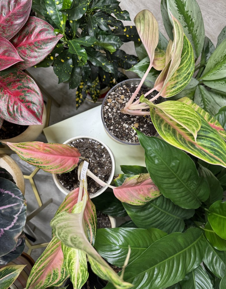 Аглаонемы красивые, в жизни чем-то похожи, но всё же разные. Видимо скученно росли, смотрят вбок, со временем выправятся. Тоже дороговато вышли с учётом доплат, но хорошо, что тогда заказала, при нынешних ценах не осилила бы.