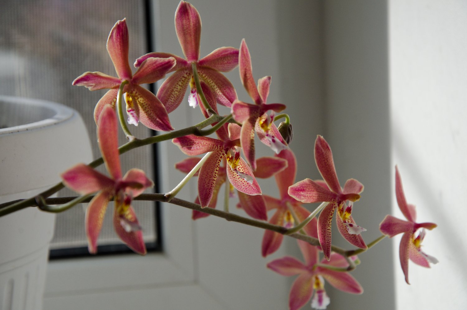 Впервые для меня цвела Phalaenopsis Zheng Min Rainbow. Ожидание длилось четыре года. Среди родителей и дедов этого гибрида указаны фаленопсис, которые мне тоже хотелось завести. Поэтому было очень интересно, каким будет их дитя.