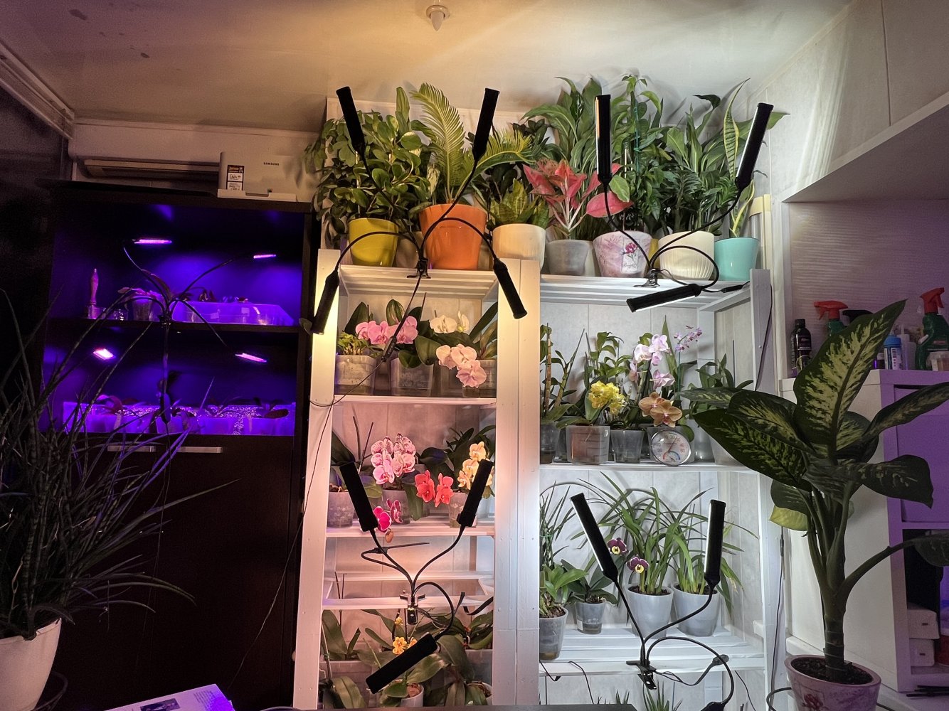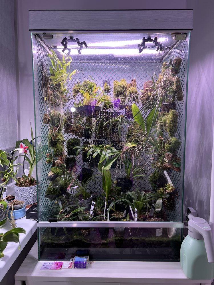 Самая большая группа в моей коллекции — это дендробиумы (около 15 %), потом идут фаленопсисы (10 %), каттлеи, башмачки, морковки и ванды (включая неофинетии) имеют примерно по 5 %, а основная часть — это всякие редкости и необычности. Весомую часть коллекции (около 70 наименований) составляют миниатюрные орхидеи, которые живут в специально сделанном для них орхидариуме. Очень люблю (условно) синие орхидеи.