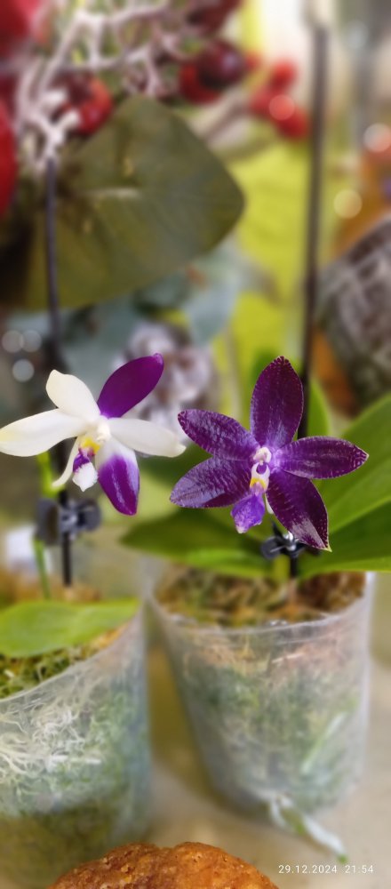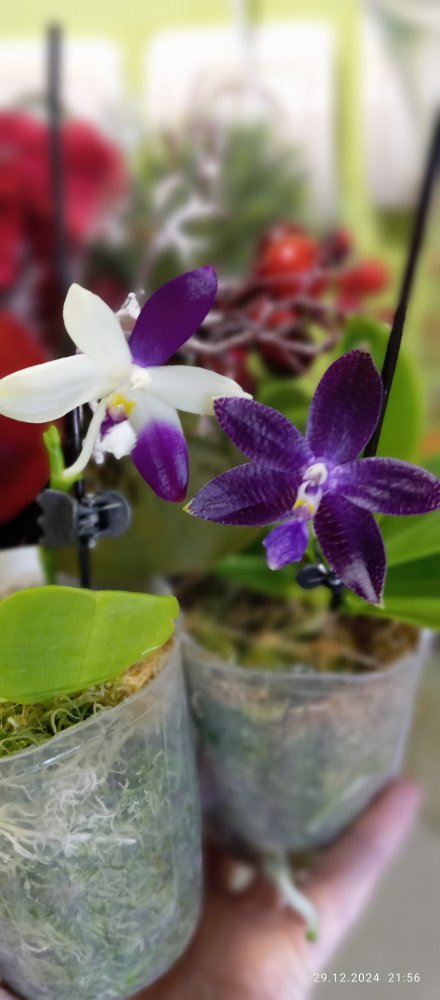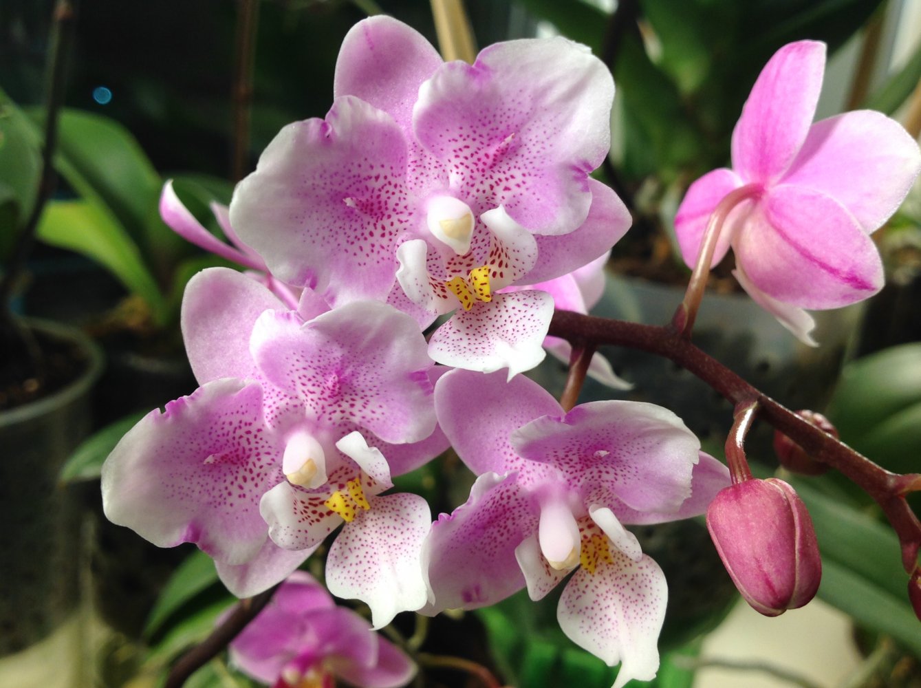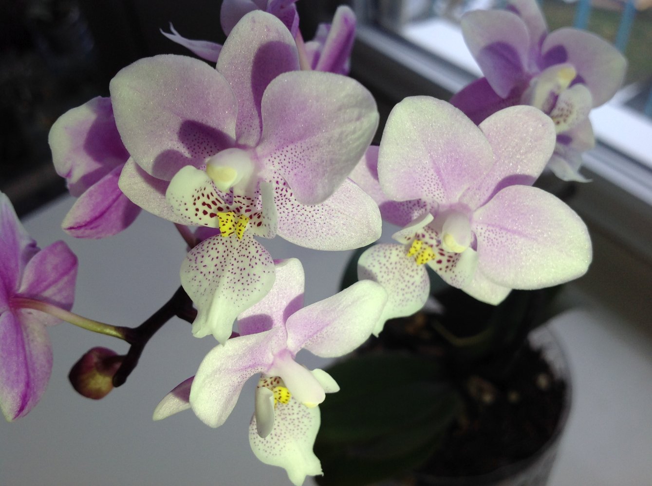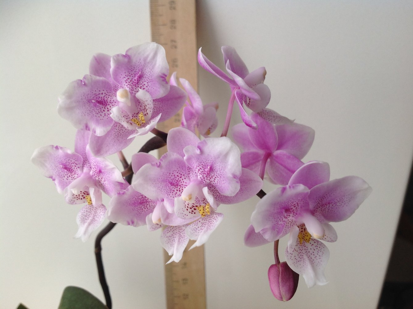 Phal.Jaiho Pink Girl varsity от Yaphon Farm с одной стороны цветоноса дал обыкновенные цветы, с противоположной стороны цветоноса дал пелоричные цветы. Получилось два растения в одном. Само растение миниатюрное. 20см от грунта вместе с цветоносом. Размер цветов 3,5 см. Без запаха. Это второе цветение у меня. В прошлом году цвёл пелориком. Прикрепляю фото при дневном и электрическом свете.