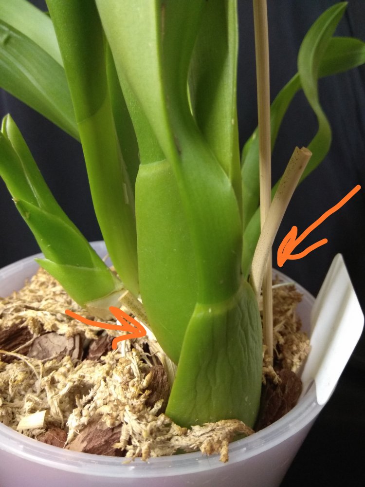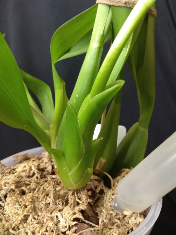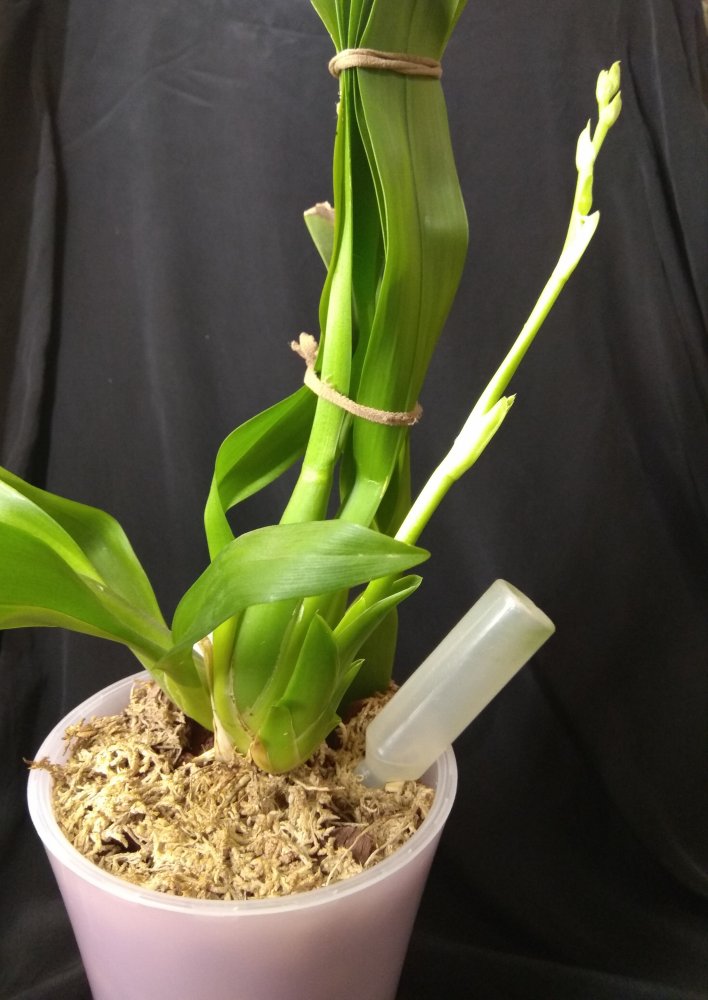 В конце осени пересадила беаллару на фитиль, а ей внезапно очень понравилось - взяла и выгнала цветонос, причём, почему-то из не до конца сформированной бульбы.