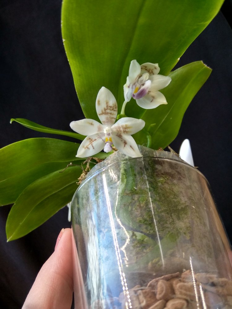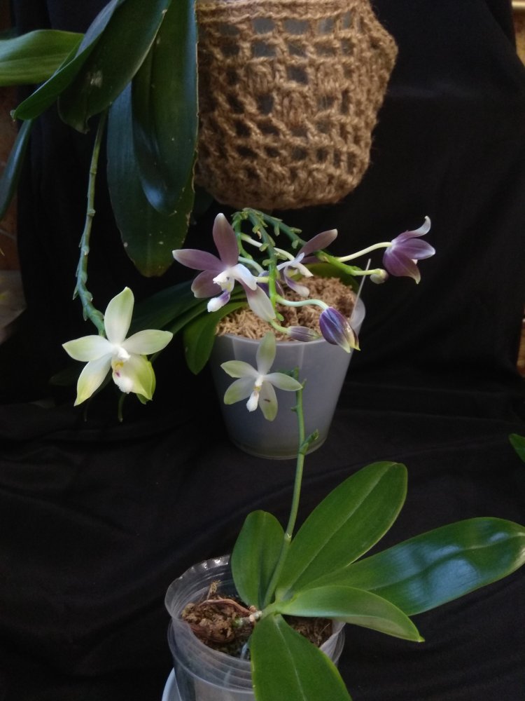 Phal. Jennifer Palermo blue x violacea indigo и Phal. Seto Pixie (tetraspis x celebensis):