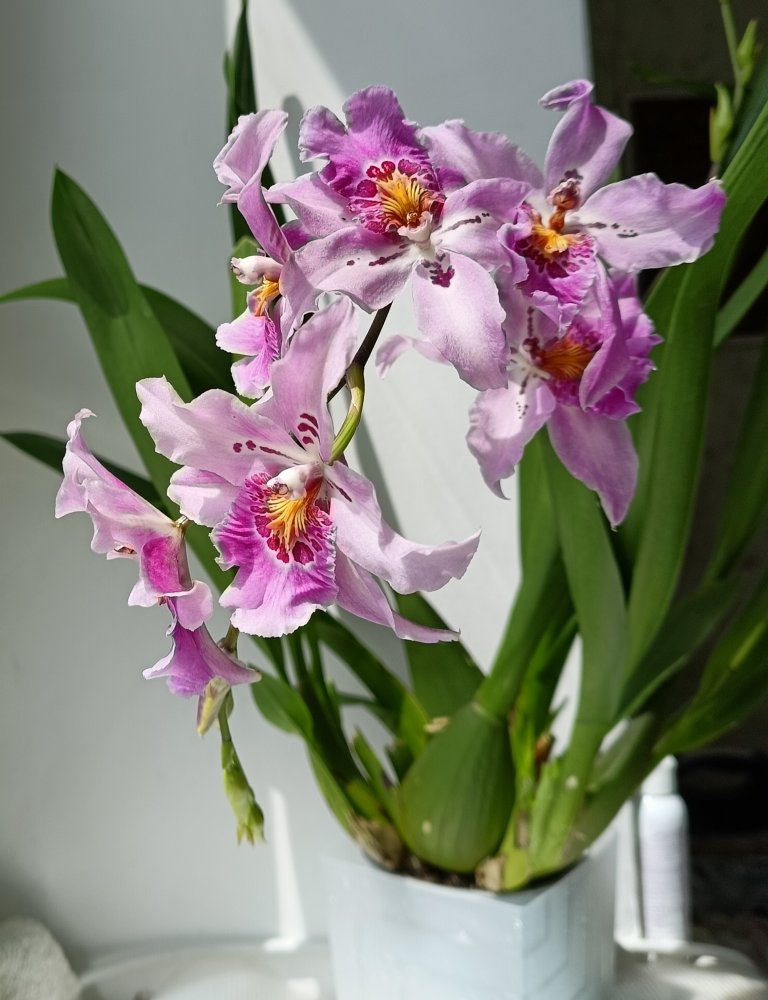 - бульбы стали намного мельче, но, в тоже время, в то цветение она выдала рекордные 4 цветоноса с одной псевдобульбы.
