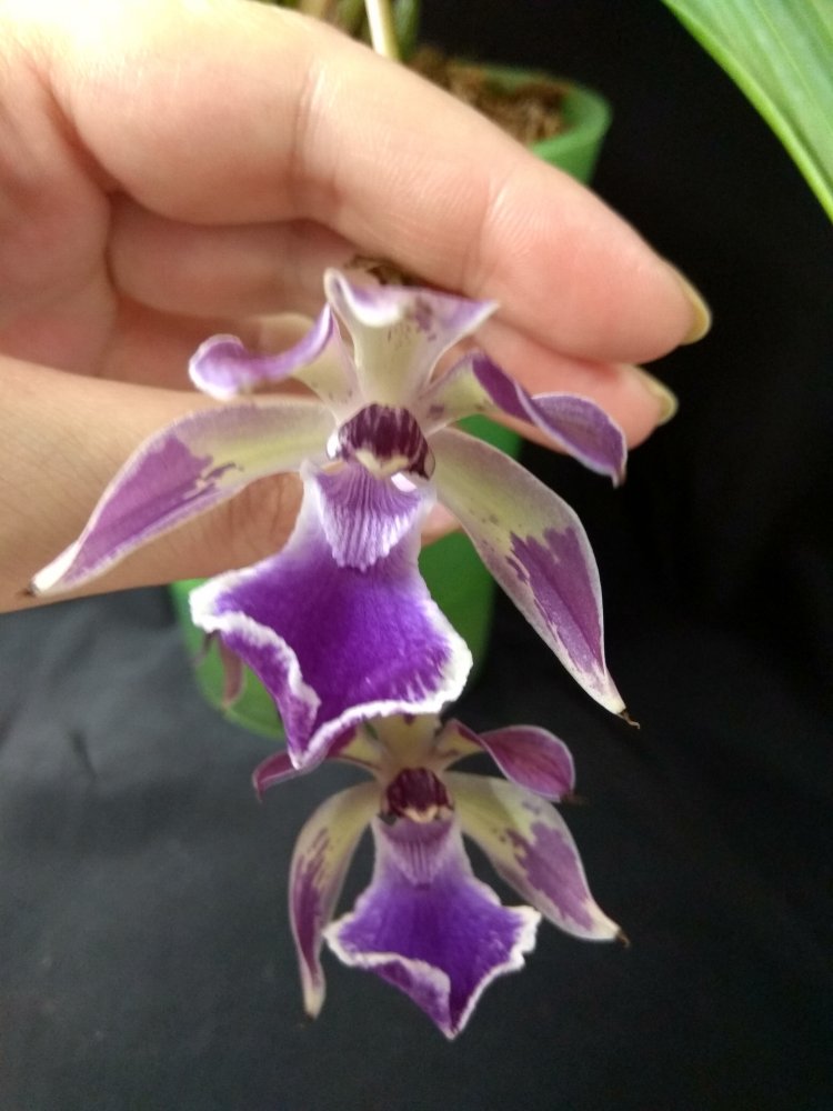 Расцвела Зигонисия Murasakikomachi - самая синяя дочь самой синей орхидеи. В этом гибриде гены Акакалиса (или Аганизии) присутствуют в количестве 75% - с явным преобладанием над генами Зигопеталума.