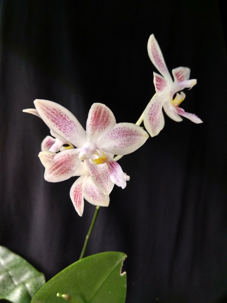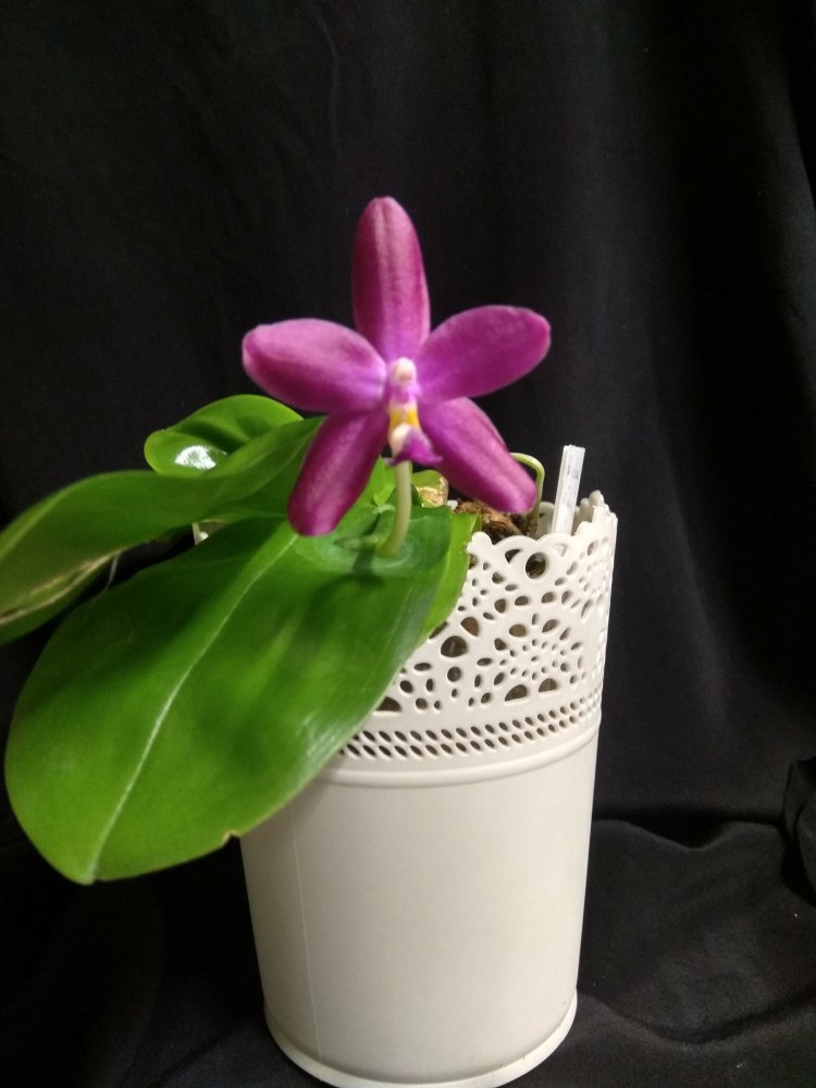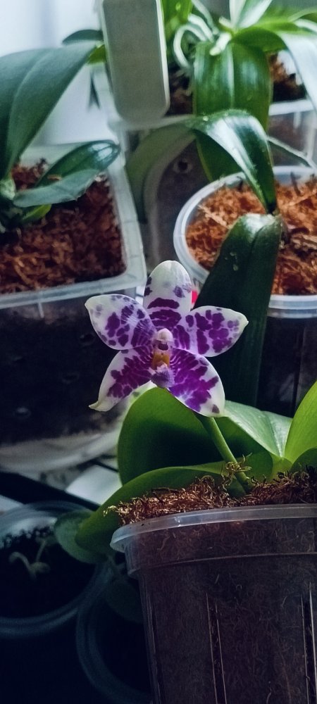На фото он, он с неутомимым ароматным цветунишкой Phal. Jennifer Palermo cerulea x violacea indigo (это уже 4-й цветок подряд и он опять дует бутон - тьфу-тьфу-тьфу) и он с Phal. Allura Ice & Fire (у которого кто-то украл все пятнышки).