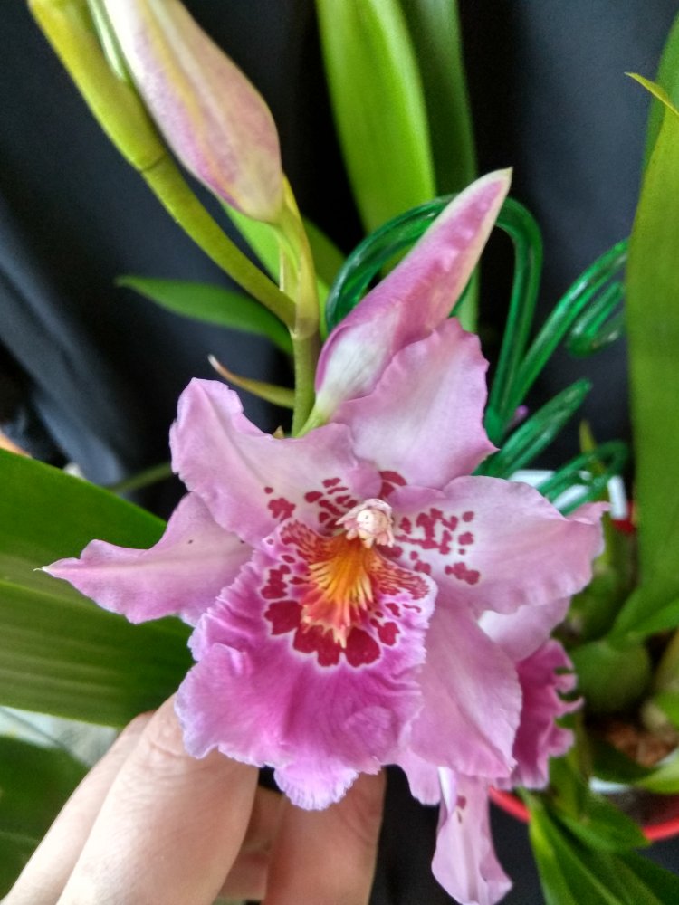 Зацвёл Phal. violacea var. Indigo Red, полученный 26.06.2025: приехал цветуще-отцветающим и одновременно растящим новый цветонос. Вот, дорастил и надул )