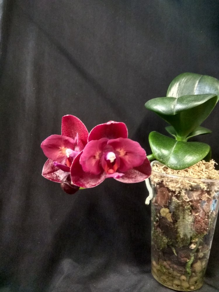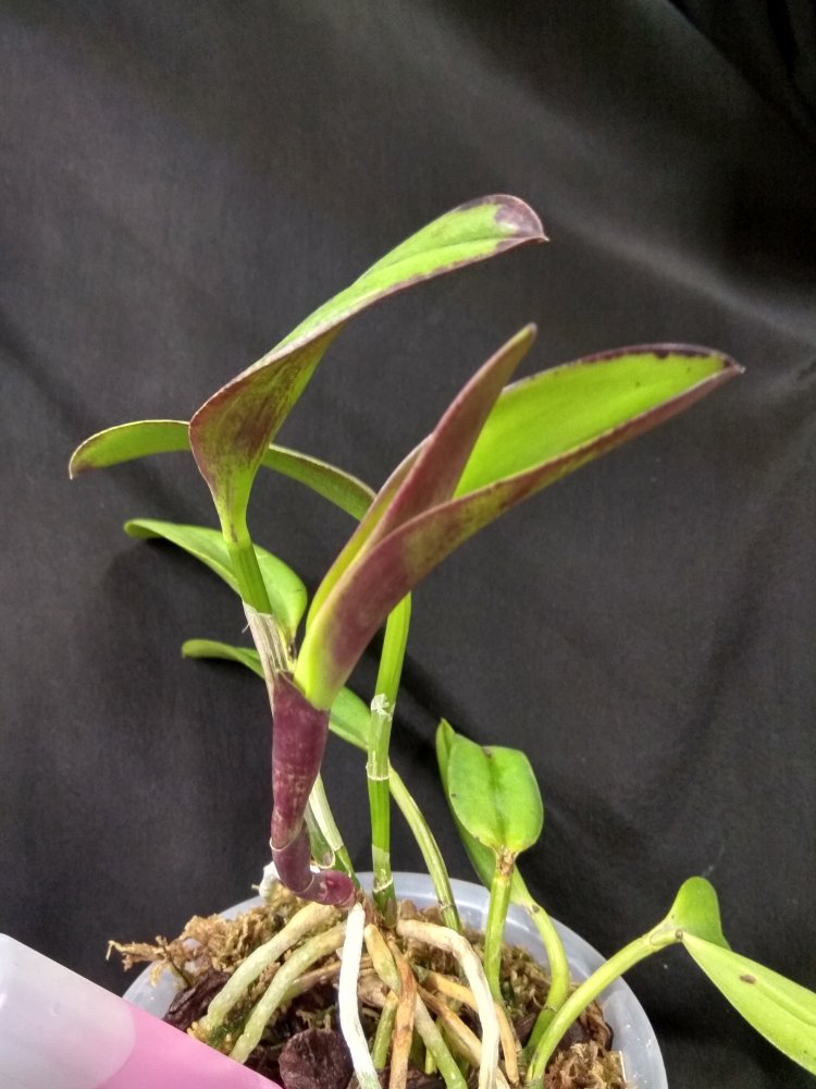 Я сначала думала, что это, возможно, из-за влажности, но замеры показали, что влажность в его зоне редко бывает ниже 55%, а вот толщина листьев, по сравнению с шиллерианами, у него приблизительно в 2 раза меньше и они жёсткие. В общем, жду, что у него внутри бутонов.