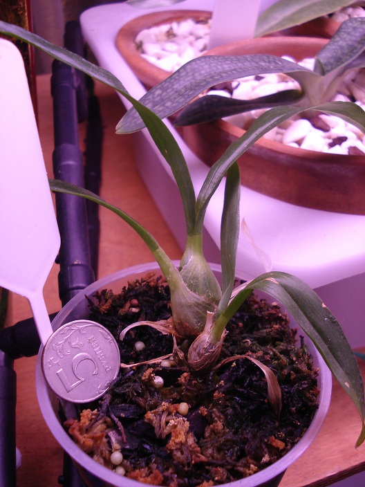 за все время нового роста ювенильная бульбочка чуть подросла и тоже чуть потолстела, сейчас уже не растет и отсушила кроющие листья. сна пока ни в одном глазу)))