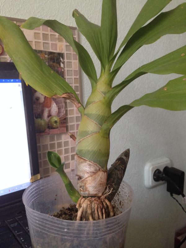 Leticia, ну вот этот кусок вне горшка - две бульбы лесенкой высотой см 3-4, остальная часть ризомы идет более менее горизонтально (там видны остальные бульбы в горшке)