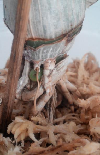 - Корни нужны в первую очередь для подкачки воды. У вас растение не проявляет признаки нехватки воды, да и старых запасов у него еще надолго хватит, значит пока вянуть не начнет - о корнях нет смысла беспокоиться.