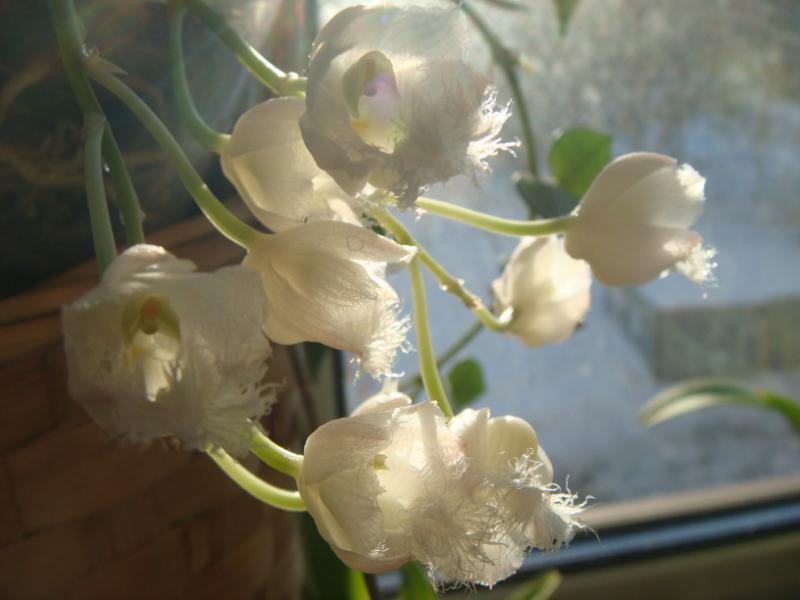 Когда читала эту тему, увидела, что здесь обсуждали Chysis limminghei и решила показать, как он цвел у меня недавно. Может будет кому-то интересно.