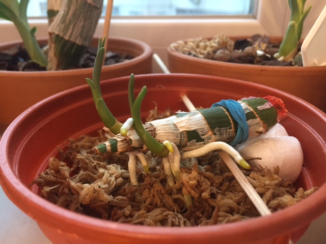 а у меня Catasetum Doris s Choice и спать не уходил, опять с цветением прокатил, бульбу наел в 2 раза больше чем предыдущую, дал в январе 2 новых роста, теперь мы такие, еще 1 лист зеленый на прошлогодней. и вот пойми, что ему не так, не процветет в этом году продам слона.