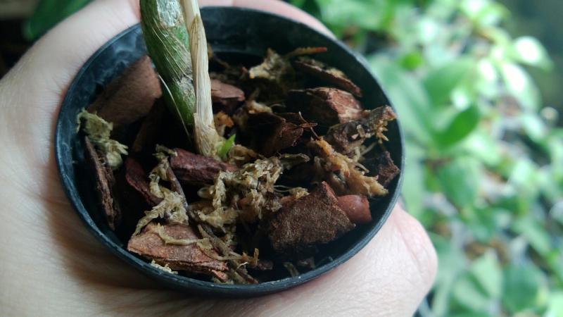 Пришла Галя - обнять и плакать))) Корни живые, а вот молодой рост, конечно, высох... посадила в малипусенький горшок, кора+мох.