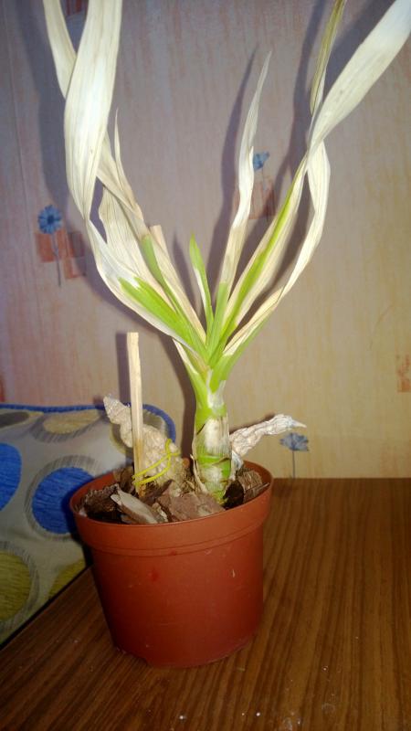 Мой катазетум гибридный по приезду распался на две части, старые бульбы дали росты и были посажены. Корни я немного пожгла органикой и несколько из них загнило. Что листья не разворачиваются, я грешила на попорченные корни. Но вот последняя бульба из приехавшего катазетума дала рост и была посажена отдельно. У нее корни идеальные, но листья так же не разворачивает. Может это особенность сорта, бывает такое или нет? Что я делаю не так?:whathapp: