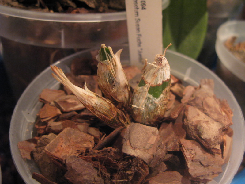 у меня Mormodes, пришел осенью, проснулся в декабре, за это время нарастил рост, а в начале февраля стал этот рост формировать в бульбу:(, которая несколько недоросла до предыдущей. Подсветки у меня нет, из-за этого бульба и получилась меньше. Сидит в корзинке и во мхе, смотрю на корни(те, что видны в отверстия), а у них концы все засохшие, середина потемневшие, но вроде твердые. Испугалась, что заливаю, стала меньше поливать,- стали сдуваться старые бульбы, потом полила- они вроде надулись... Продолжать поливать с той же частотой? но меня волнует, что корни не растут:( Но поскольку это мормодес, а их вроде поливают круглый год( зимой меньше), значит поливать? листья так и стоят зеленые, просто больше уже не растут.