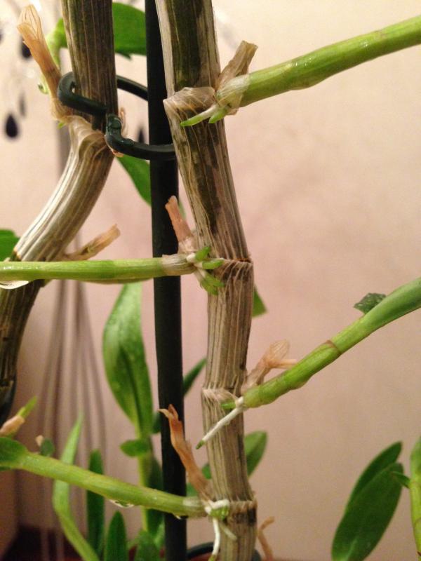 Дендробиум отцвёл и на месте цветов появились детки, почти от каждого цветка,они уже и корни дают.