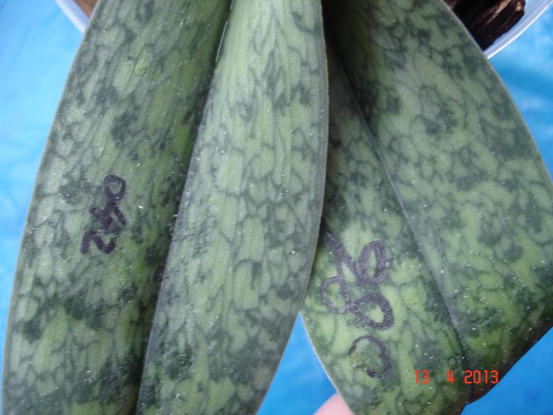 А вдруг случится чудо - процветет два в одномPaph. сhamberlainianum x delenatii (TW_РМ042) был получен в декабре 2012 г. За 4 месяца вполне адаптировался, поднял "крылья".Посмотреть вложение 36971 И тут обнаружился еще один номер на нижнем листе... Посмотреть вложение 36972 Возможно, что это Paph. delenatii x concobellatulum (TW_PM086). Как говорится, потом - сюрпиз будет!