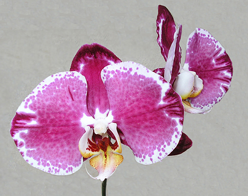 Я не очень надеялась на цветение, как в каталоге, но при таких красивых родителях (http://www.orchidworks2.com/asp_scripts/print_image.asp?WebsiteID=16928&GalleryID=163520&MediaID=3155211&Print=0 и http://www.orchidboard.com/community/gallery/showphoto.php?photo=23003) такой....