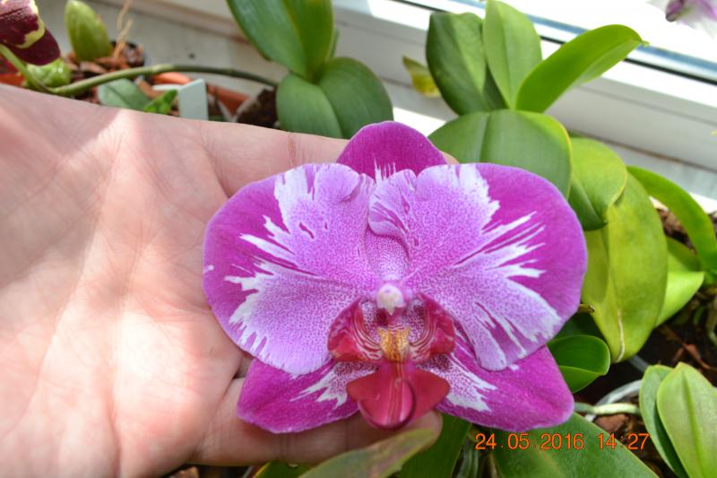 grizlik, не больше самого цветка, чуть больше 10 сантиметров в размахе. Мы два с лишним года договаривались: дважды экстренная пересадка от шаловливых ручек сына и племянницы, летом 2015 года клещ сожрал практически всю плантацию, но вовремя вернулись из отпуска