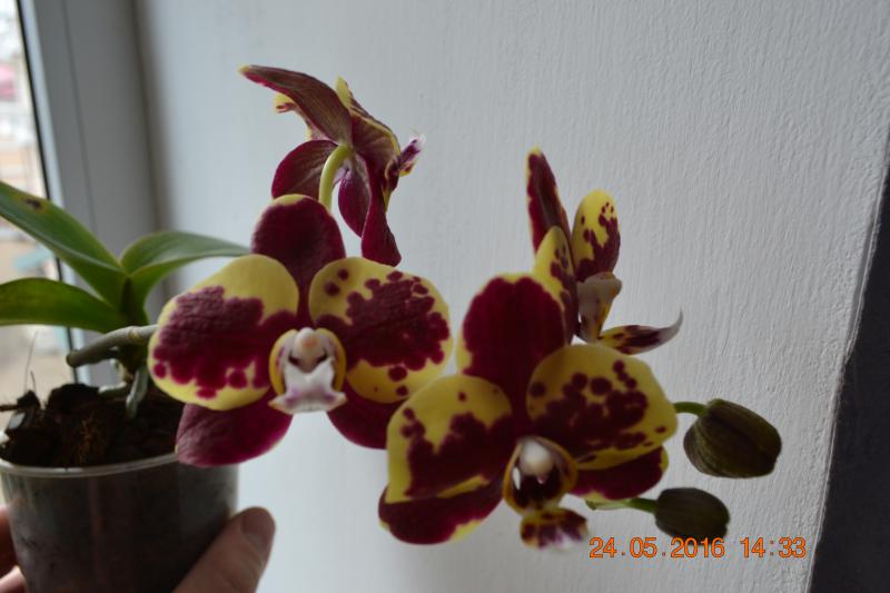 Только с ним попробуйте очень осторожно с поливом, пока маленький ( сейчас сам цветонос очень боится влаги). В марте было 4 цветоноса этого красавца, полила как обычно, они все замокли и погибли. Поливайте по краям горшка.